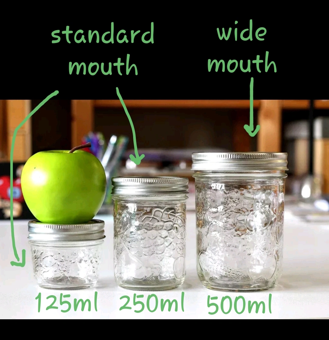 4 Bernardin 500ml Wide-Mouth mason jars with pretty, fruit-patterned glass. π See pic 2 π· for size comparison. These are the ones at the right side of the pic. Jars are as-new (and come with lids). β’ Glass is in perfect new condition (used once for a photo shoot). β’ Lids: discs are as-new, bands are gently used. 4 for $10. π Pick up from Yonge & St Clair