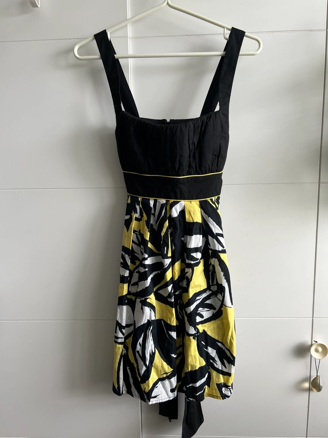 Cute summer dress. Black and yellow abstract print. Size 5.