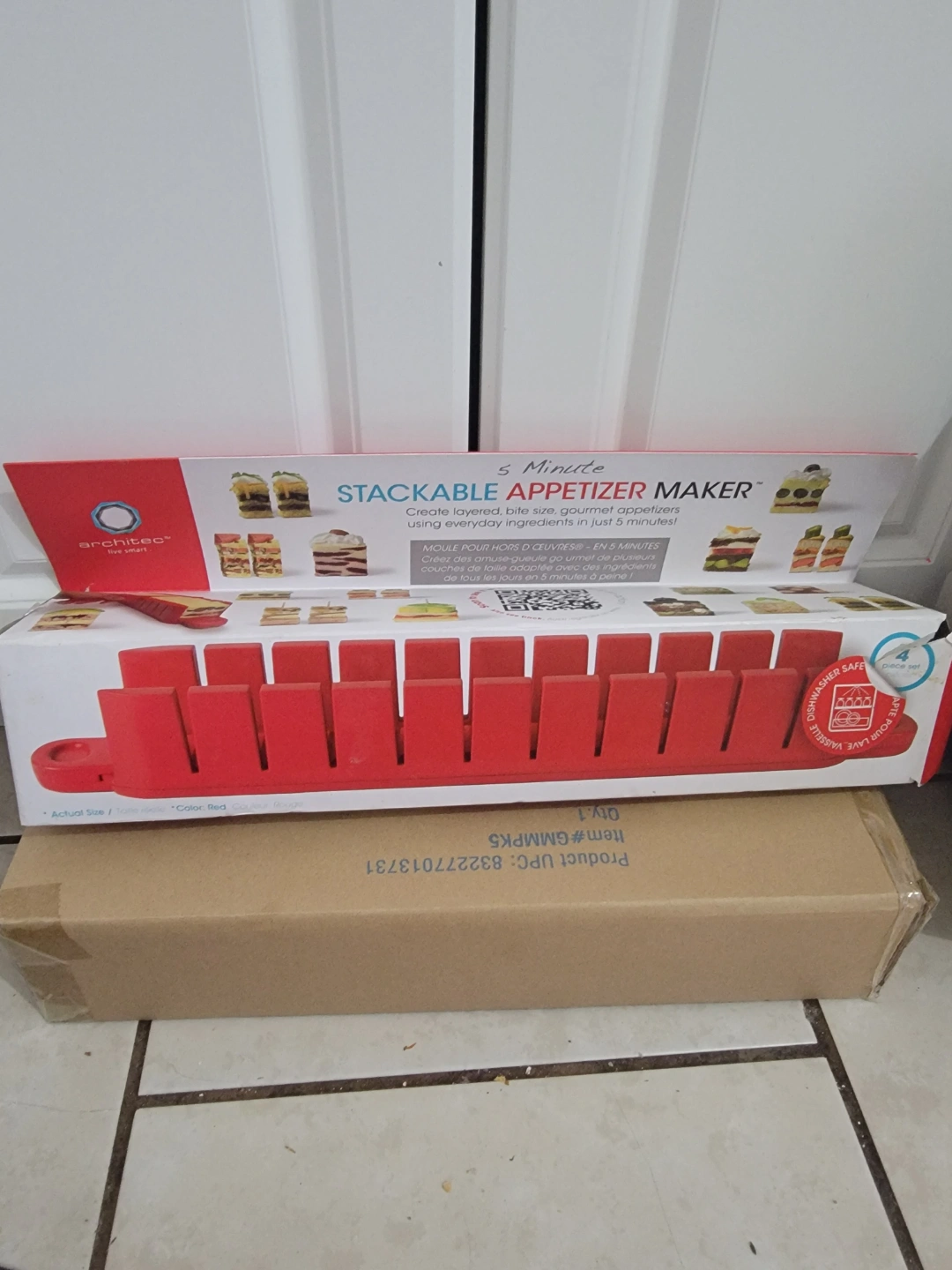 Red silicone appetizer maker. Creates layered, bite-sized gourmet appetizers. Dishwasher safe. Brand new in box. pick up location Royal York and Minico