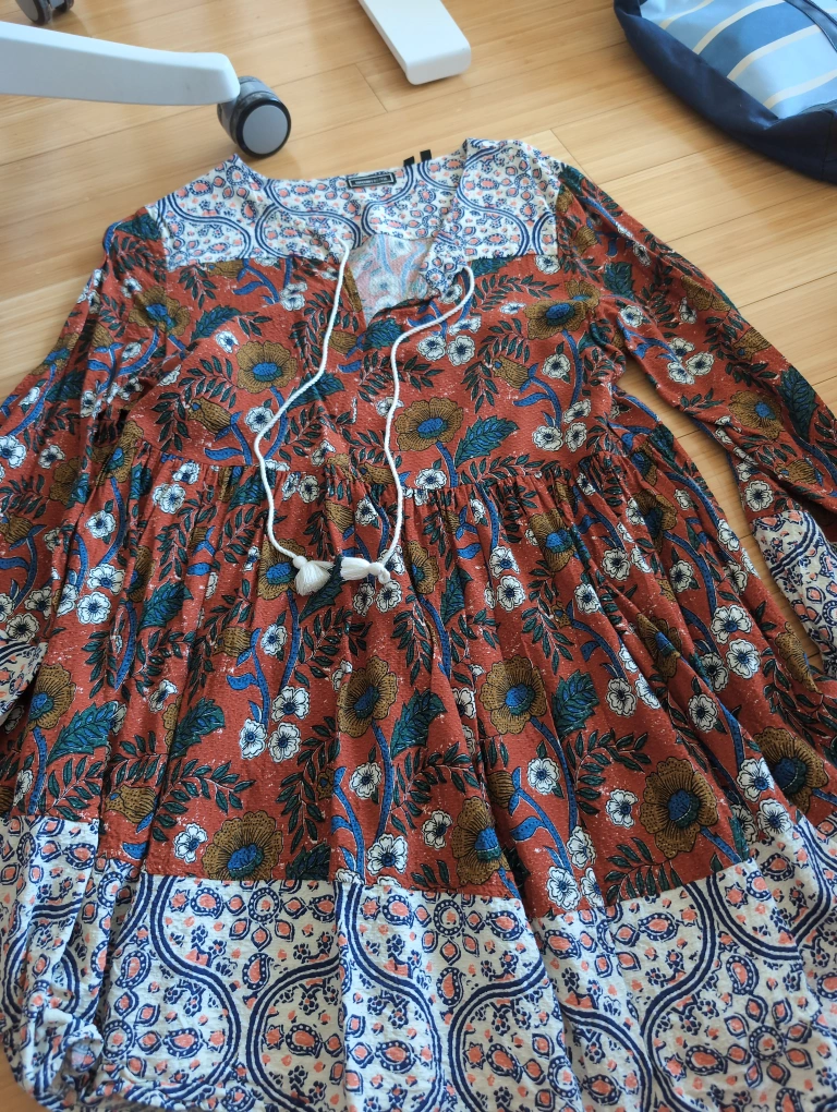 Beautiful floral mini dress. Long sleeves. Size 10 US. Boho style. Lightweight fabric. Great for spring and summer. It's more like a medium!