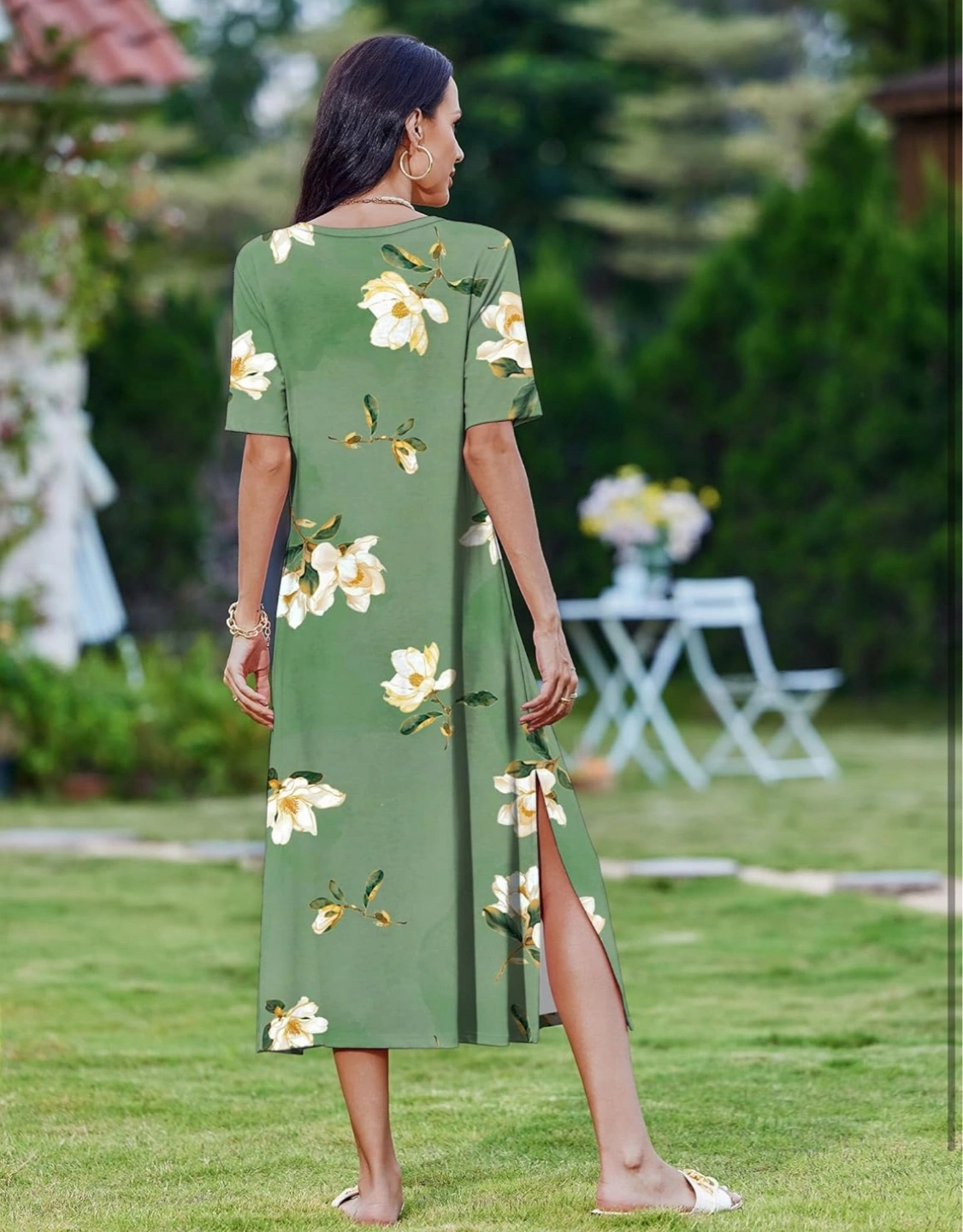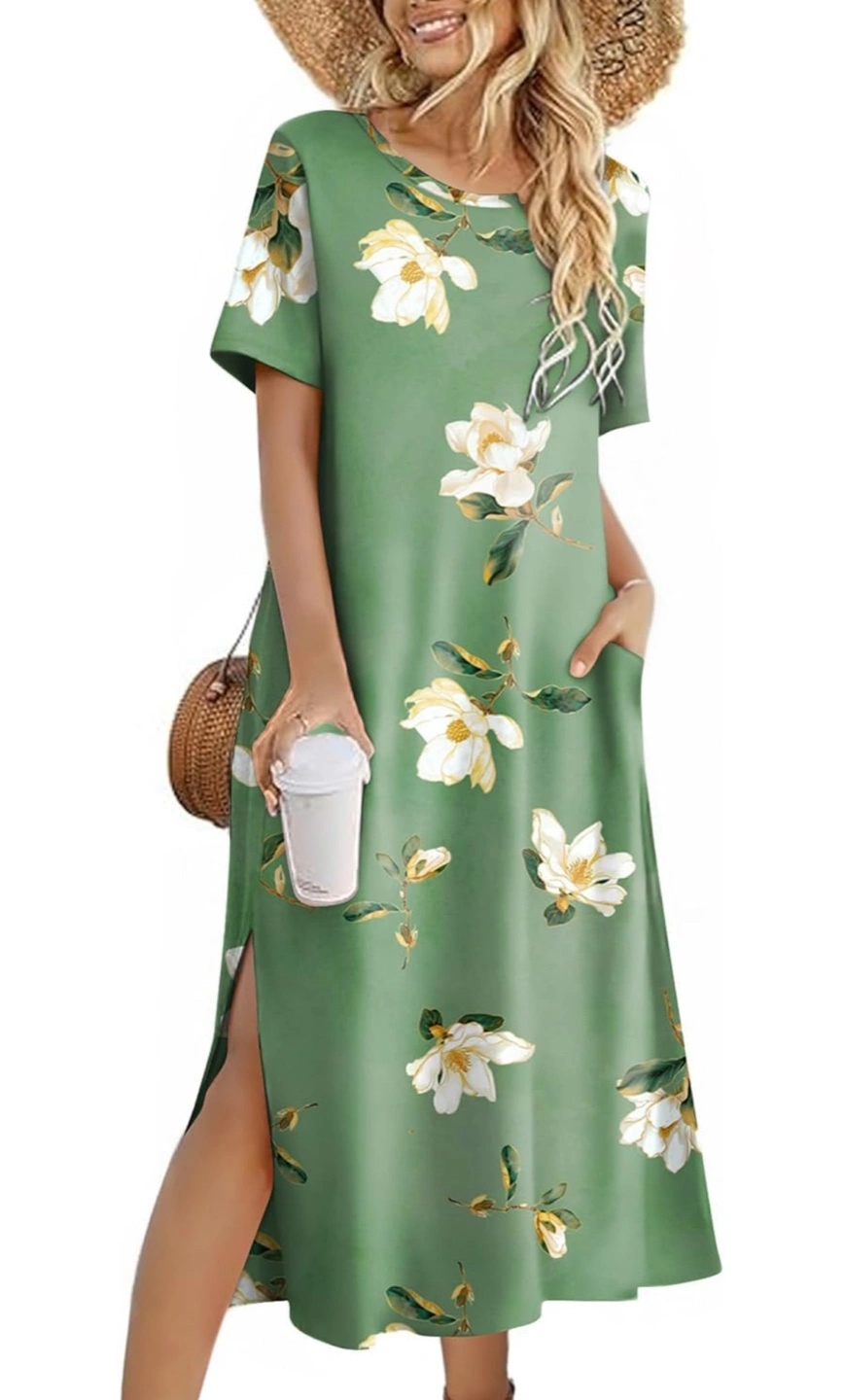 NEW! Retails for $39. Women's casual midi dress. Features short sleeves, a round neckline, and a floral print. Side slits for added style. Comfortable and lightweight material. Perfect for summer.