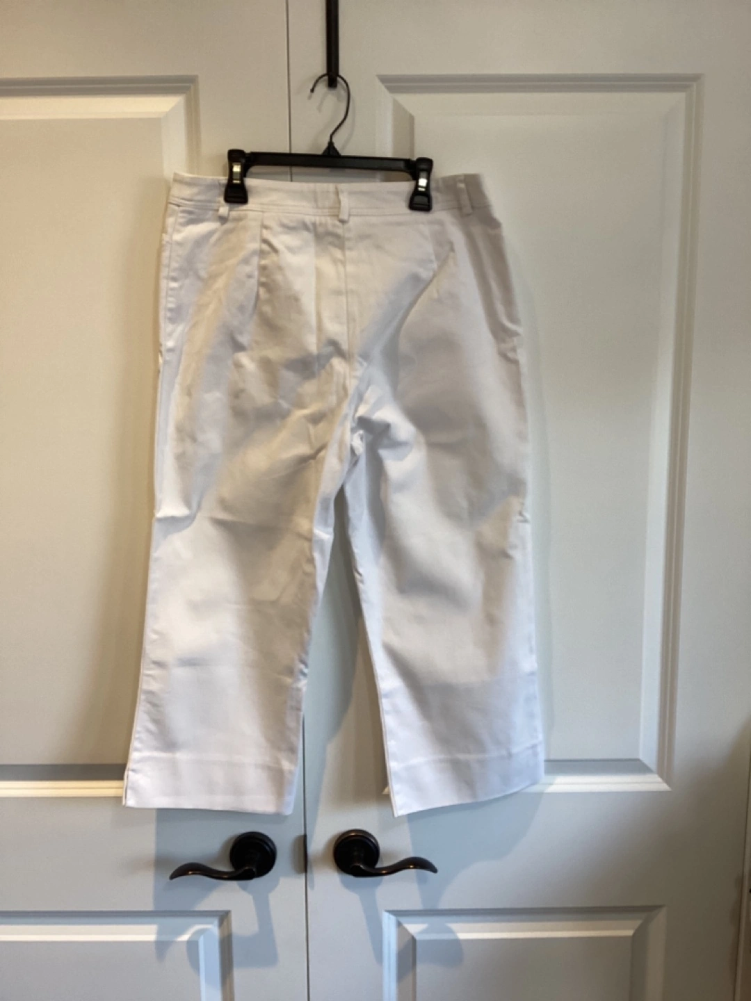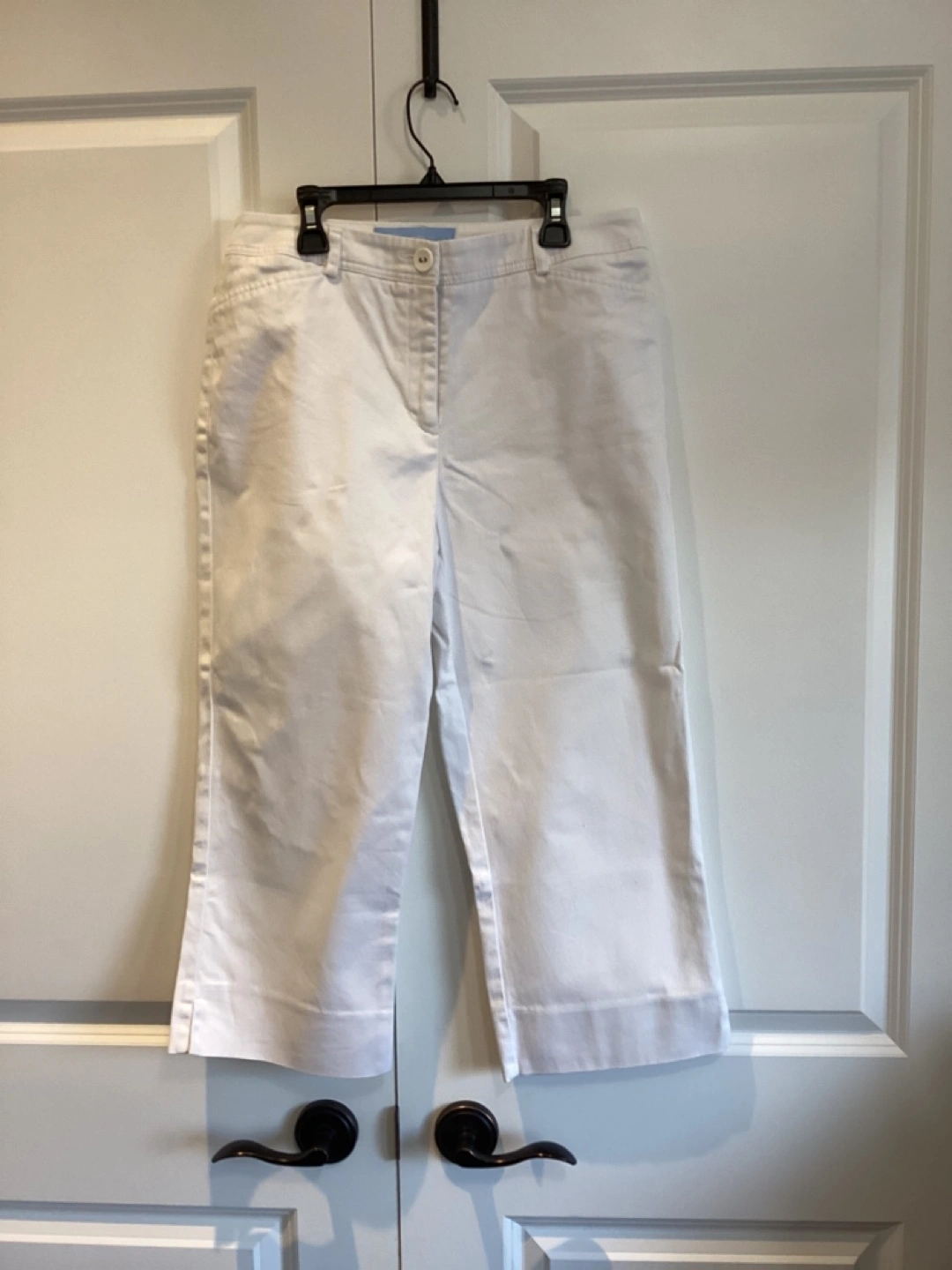 Denver Hayes White Capri, this is a Mark’s brand, great Capri for the Spring/Summer, side vents at hem, 98% Cotton 2% Spandex, Size 8, $10 or best offer. Waist 31 1/2” Hips 40” Inseam 21 1/2”