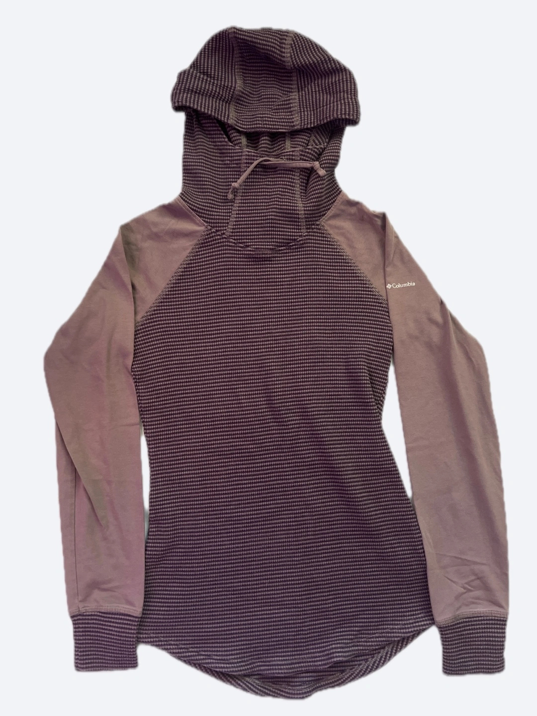 Women's size small Columbia waffle knit hoodie. Purple colour. Long sleeves. Hooded. Excellent condition.