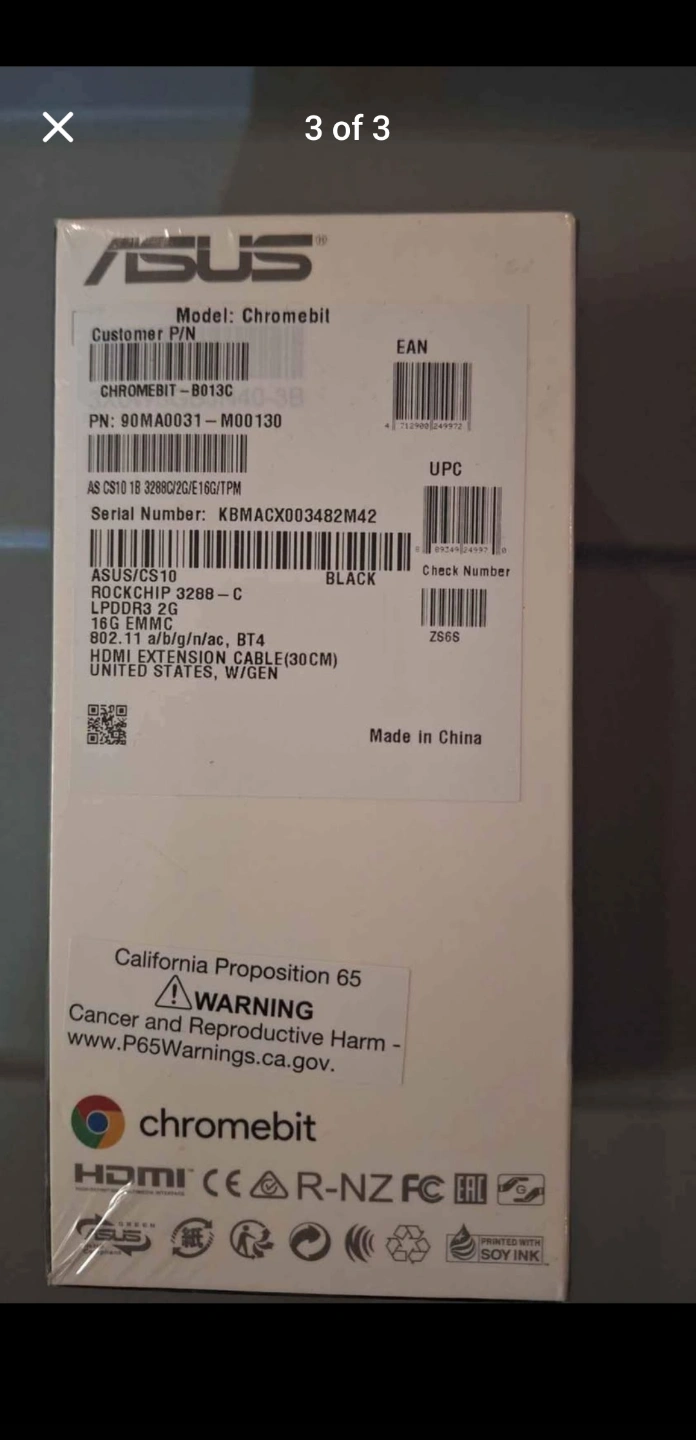 Chromebit computer stick. Black. New, in box. Includes box and packaging. Model CS10.