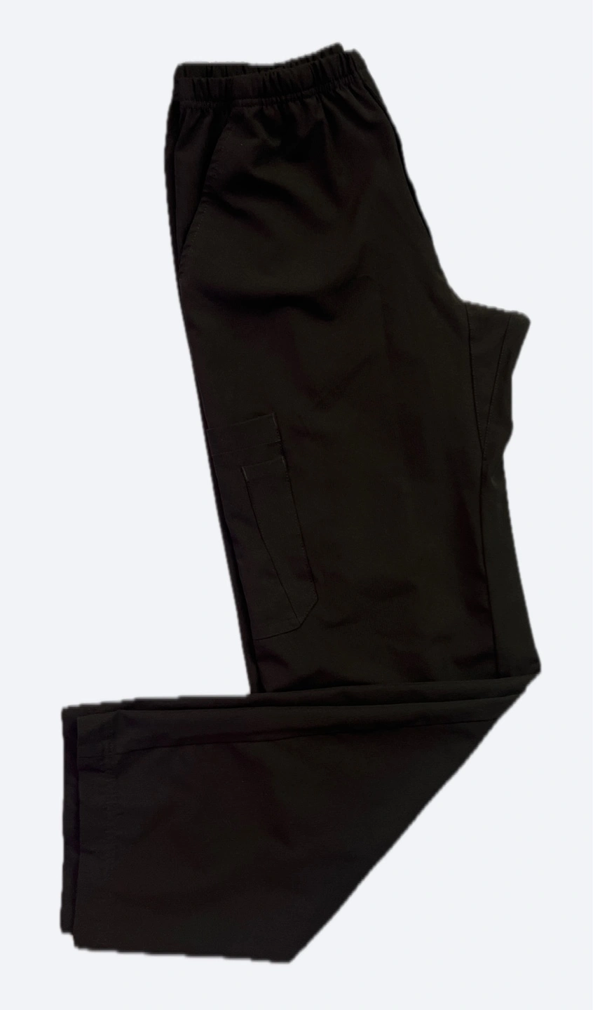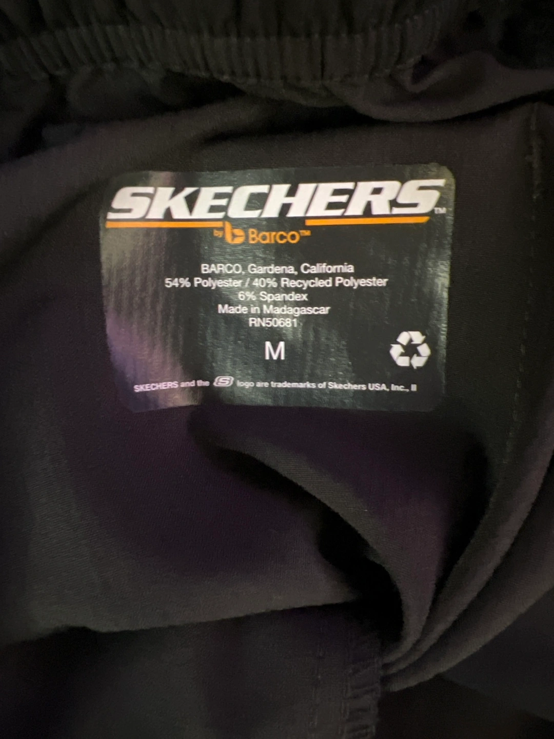 Black men's scrub pants. Four pockets. Zip fly. Size medium. Comfortable and durable. Made by Skechers for Barco.