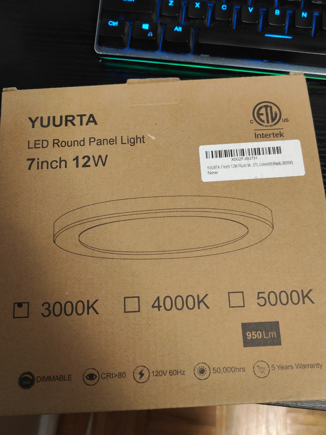 7-inch 12W LED round panel light. Dimmable. Colour temperature options: 3000K, 4000K, 5000K. 950 lumens. 50,000 hours lifespan. Includes installation instructions. Surface mounting. Sold for 40 each BUT if more than 3 is bought depending on quantity the price will drop from 30-35 each.