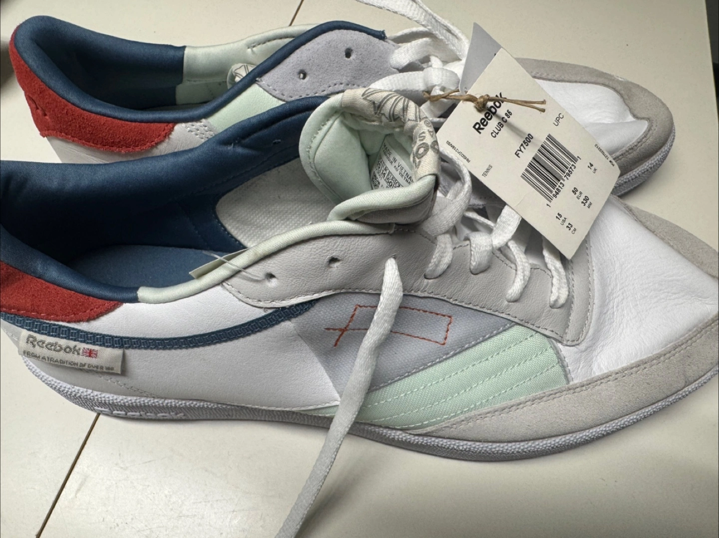 Pair of Reebok Club C 85 vintage sneakers. Colourblocked design. New with tags.
