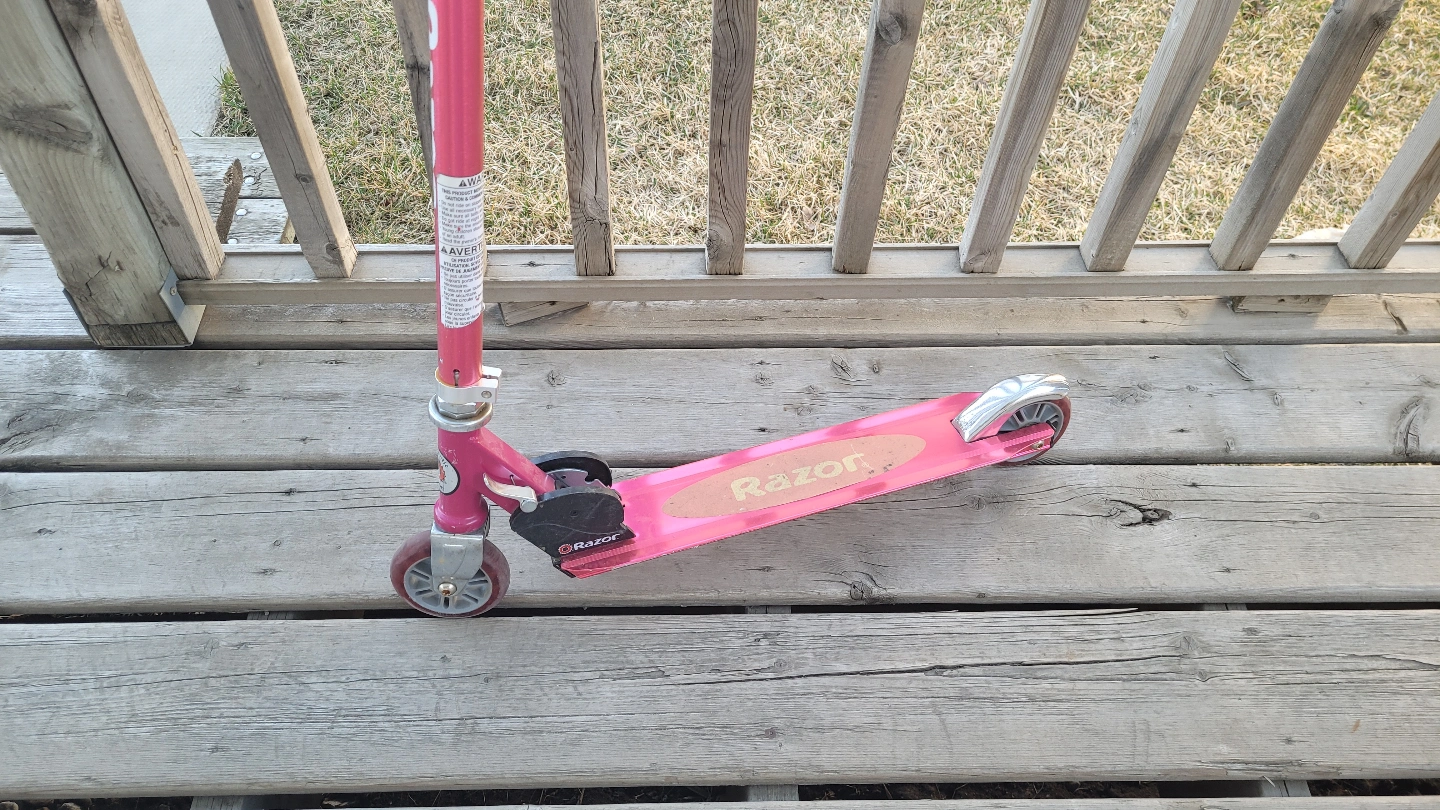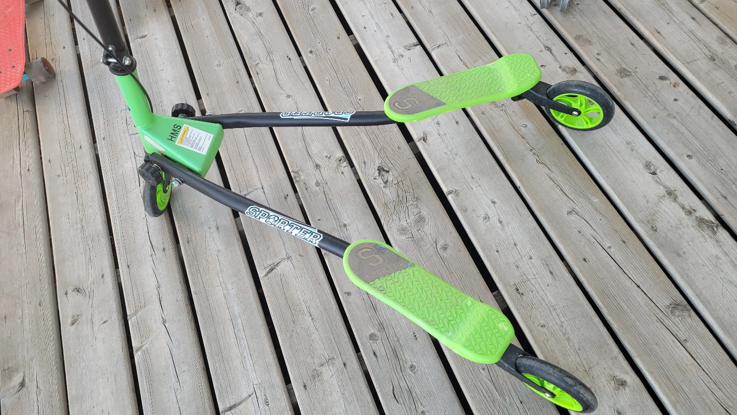pennyboard: 15 (used a couple of times, has some scratches but if cleaned and tooken care of properly, it works like brand new) skateboard: 5 (its broken and its best to be used for parts) red razor scooter: 15 (good condition, maybe a few scatches but its extendable and nothing is broken) Flickr scooter: 25 (its in good condition, barely used but its pretty dusty and dirty, a clean would be perfect, nothing is broken)