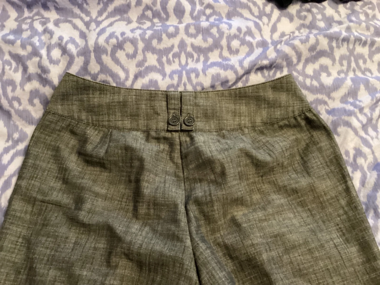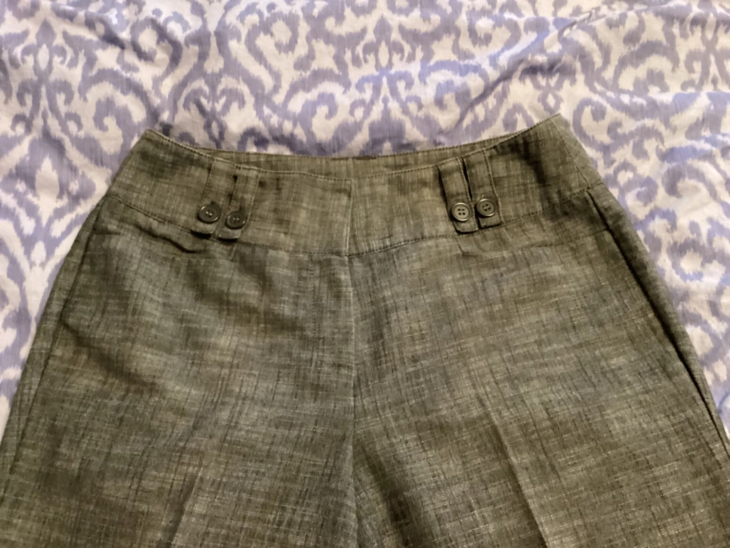 Cleo Grey Mix Capri, like new, sits at waist, great basic item goes with everything, fabric is light and wash and wear, great item for travel. It doesn’t fit me anymore otherwise I would keep it. 53% Cotton 46% Polyester 1% Spandex, Size 8, $10 or best offer. Waist 31” Hips 40” Inseam 21 1/4”