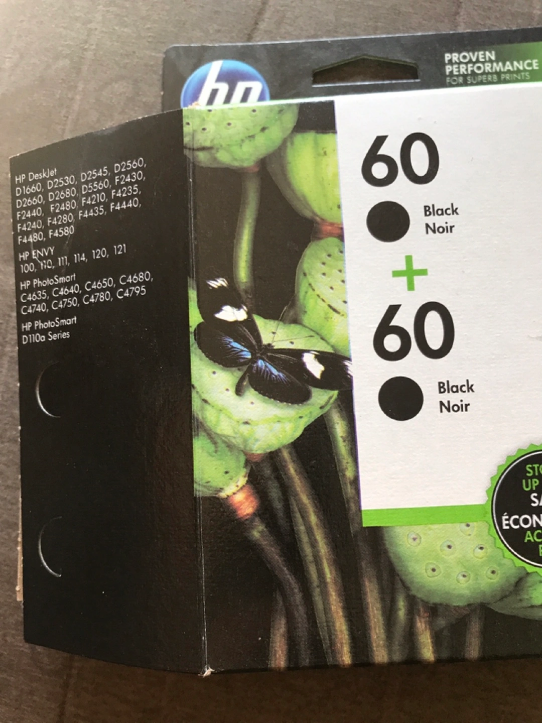 ONE new HP 60 black ink cartridge. Compatible with various HP DeskJet, ENVY, Photosmart, and PhotoSmart printers. See image for compatible printer models.