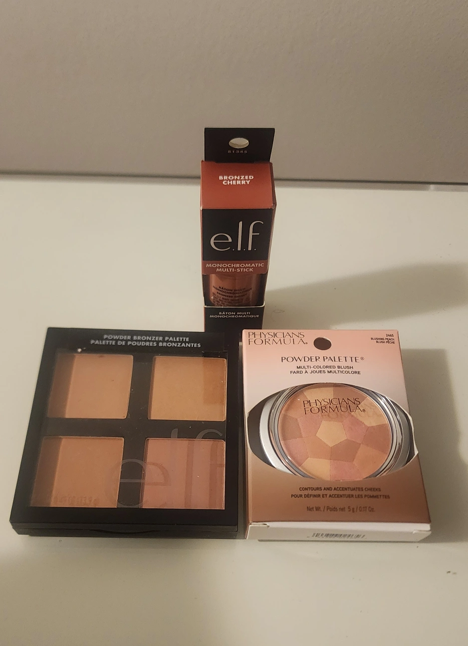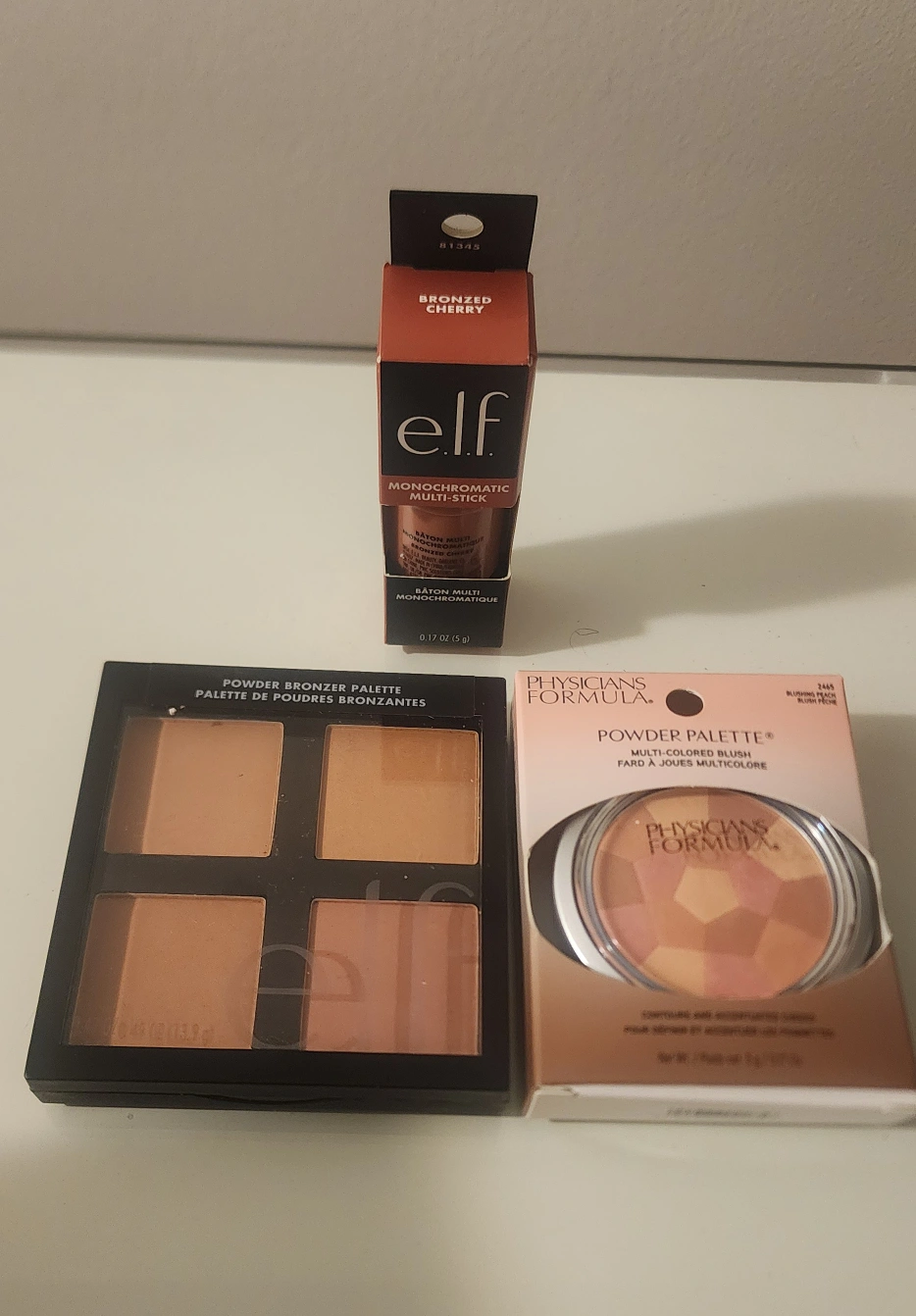 e.l.f. Cosmetics Monochromatic Multi-Stick in Bronzed Cherry. e.l.f. Powder Bronzer Palette. Physician's Formula Powder Palette blush. Lightly used.
