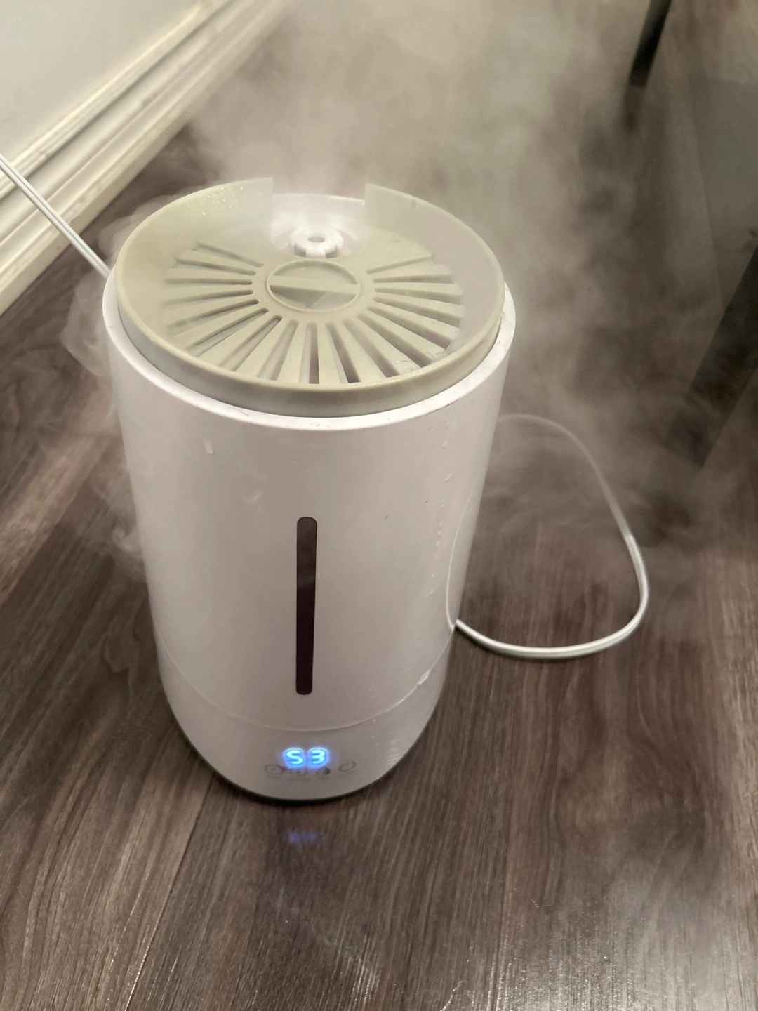 14White humidifier, cool mist. Features a digital display and a removable water tank. Great for dry climates.