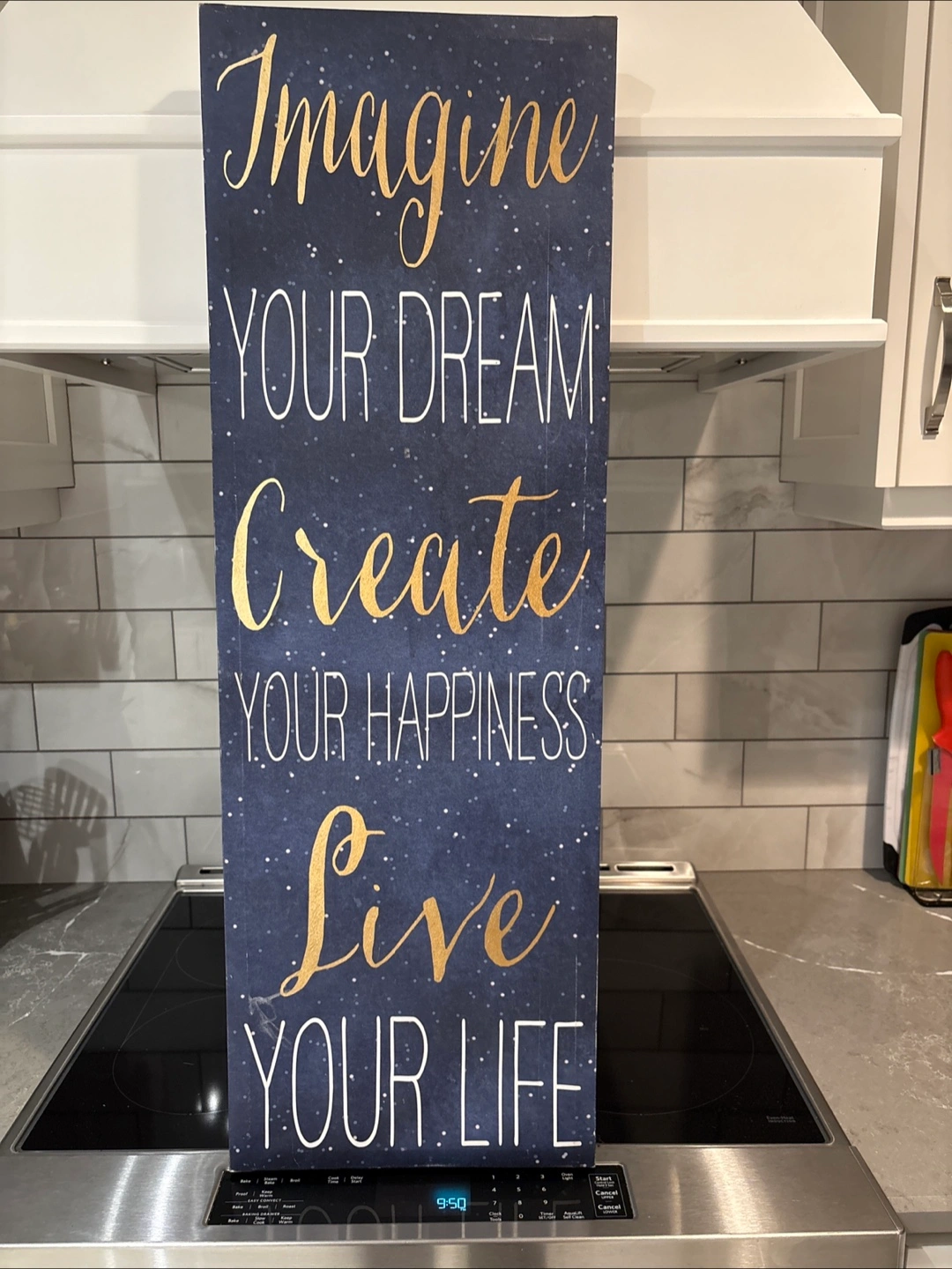 Canvas wall art featuring inspirational quote. Dark blue background with gold lettering. 12”x36” Perfect for any wall area in your home… pick up on Chando Drive in Chicopee N2A4H8
