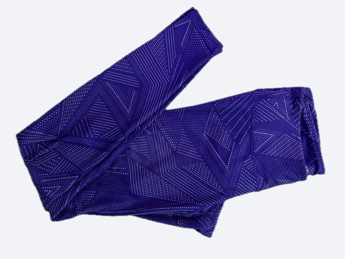 Purple leggings. Geometric print. Workout leggings. Great for exercise or casual wear.