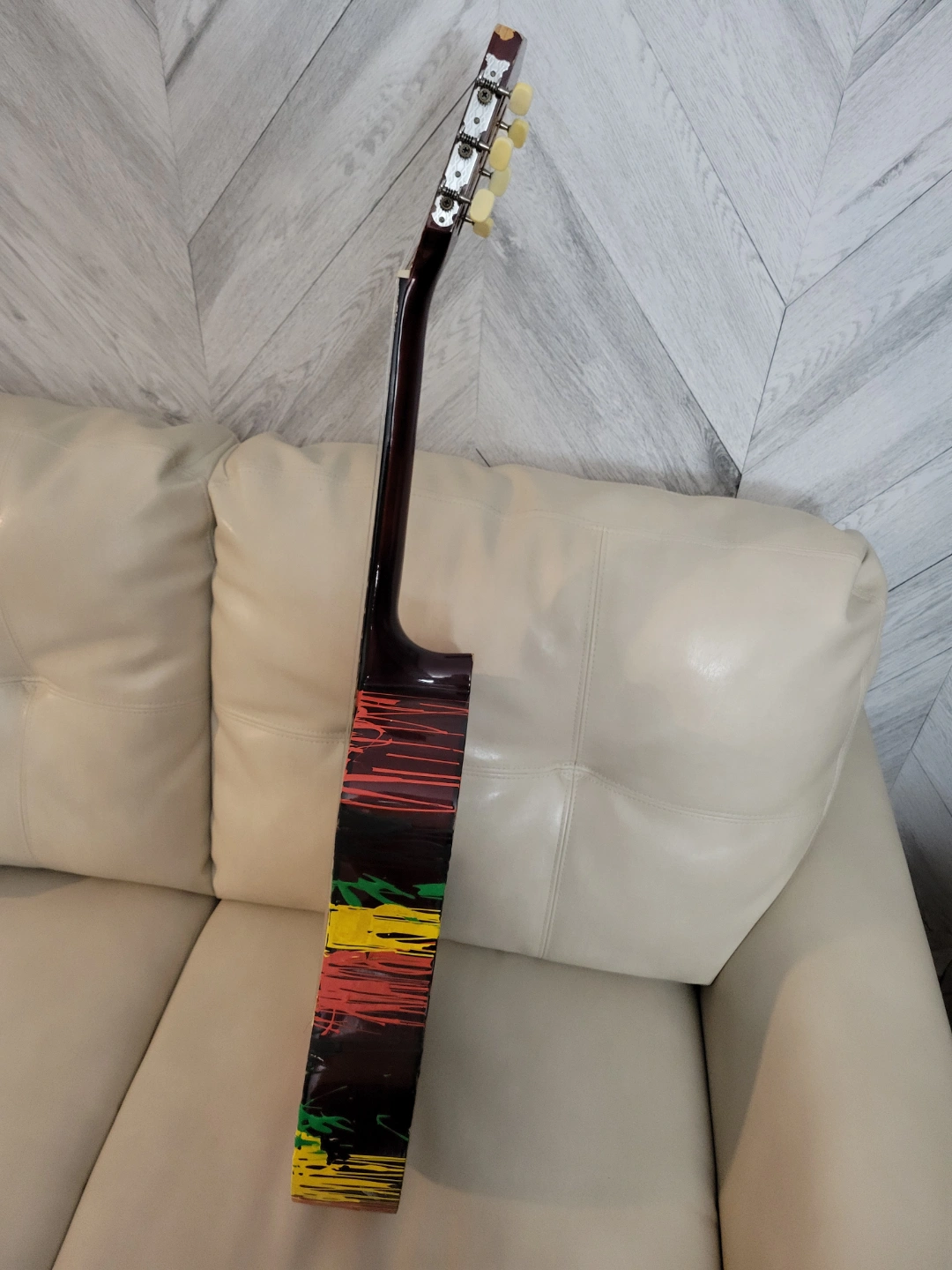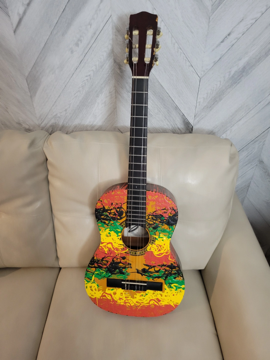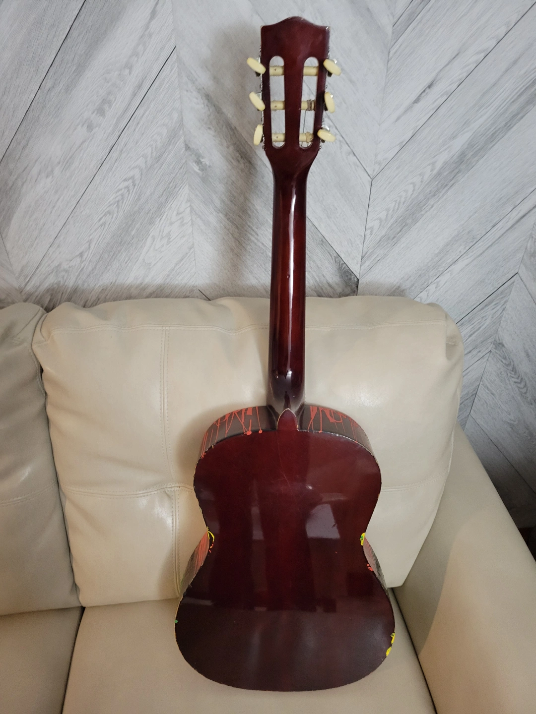 Classical Acoustic guitar 30", kit 1/4 size. Hand crafted wood natural, colourful paint job. Six strings. Good for beginners or experienced players.