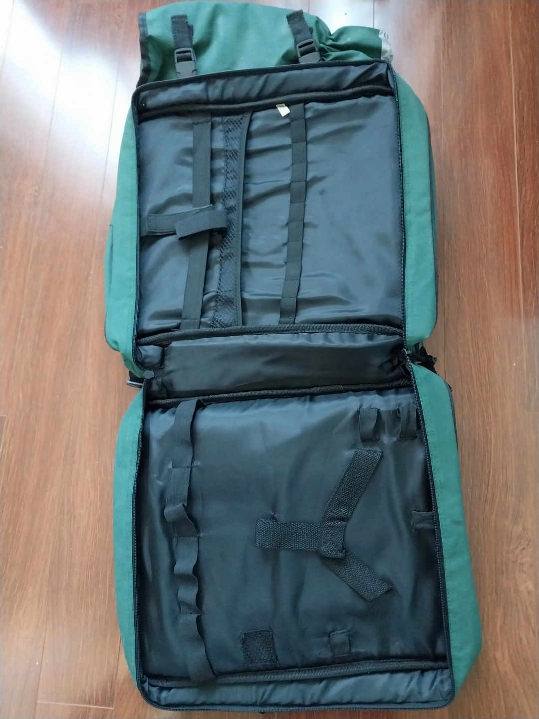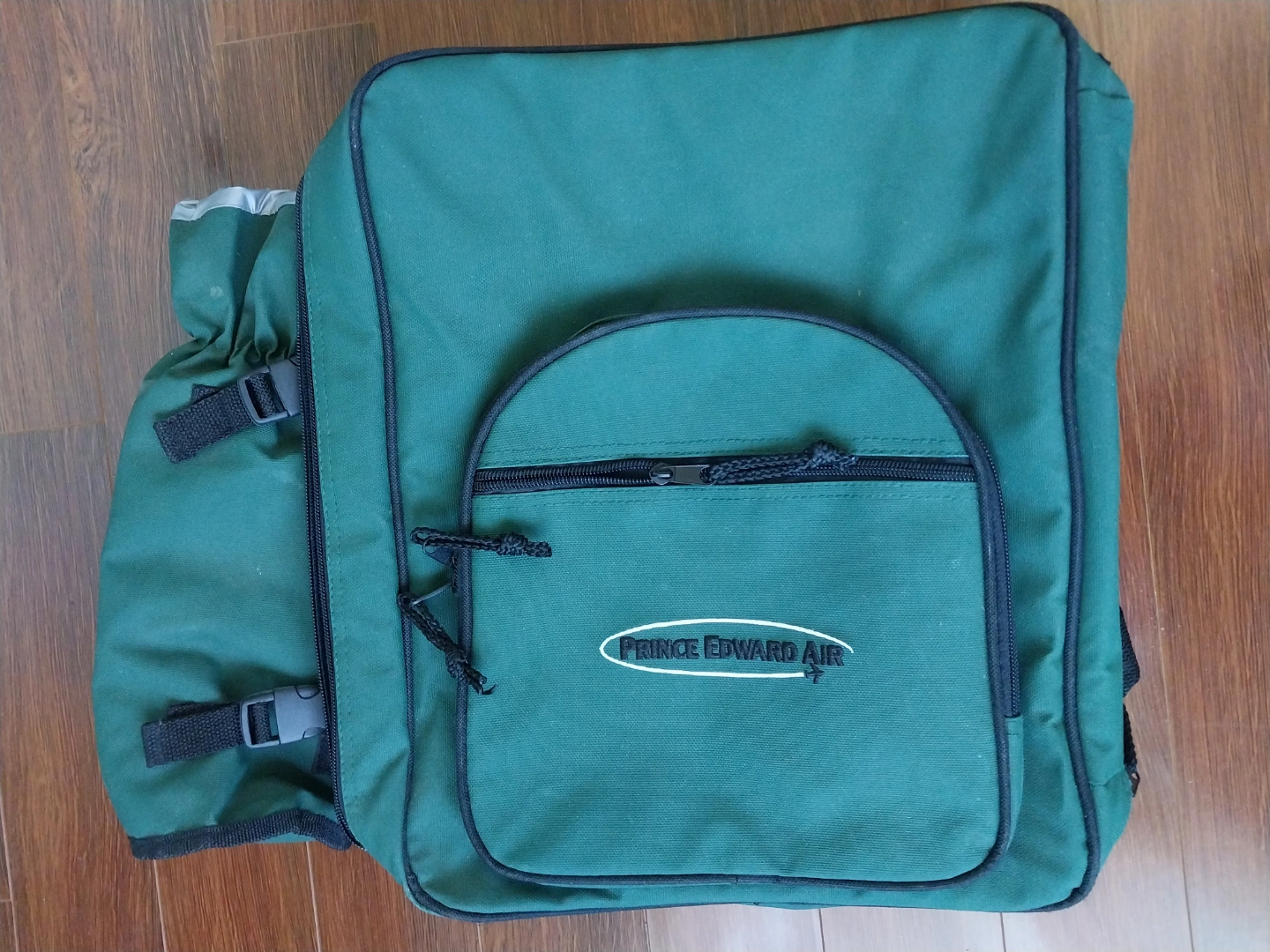 *Cash and pick up ONLY at location shown on ad. *NO trades or delivery. Large green backpack. Multiple compartments and pockets. Ideal for school, travel or camping. Durable fabric. Zipper closure.