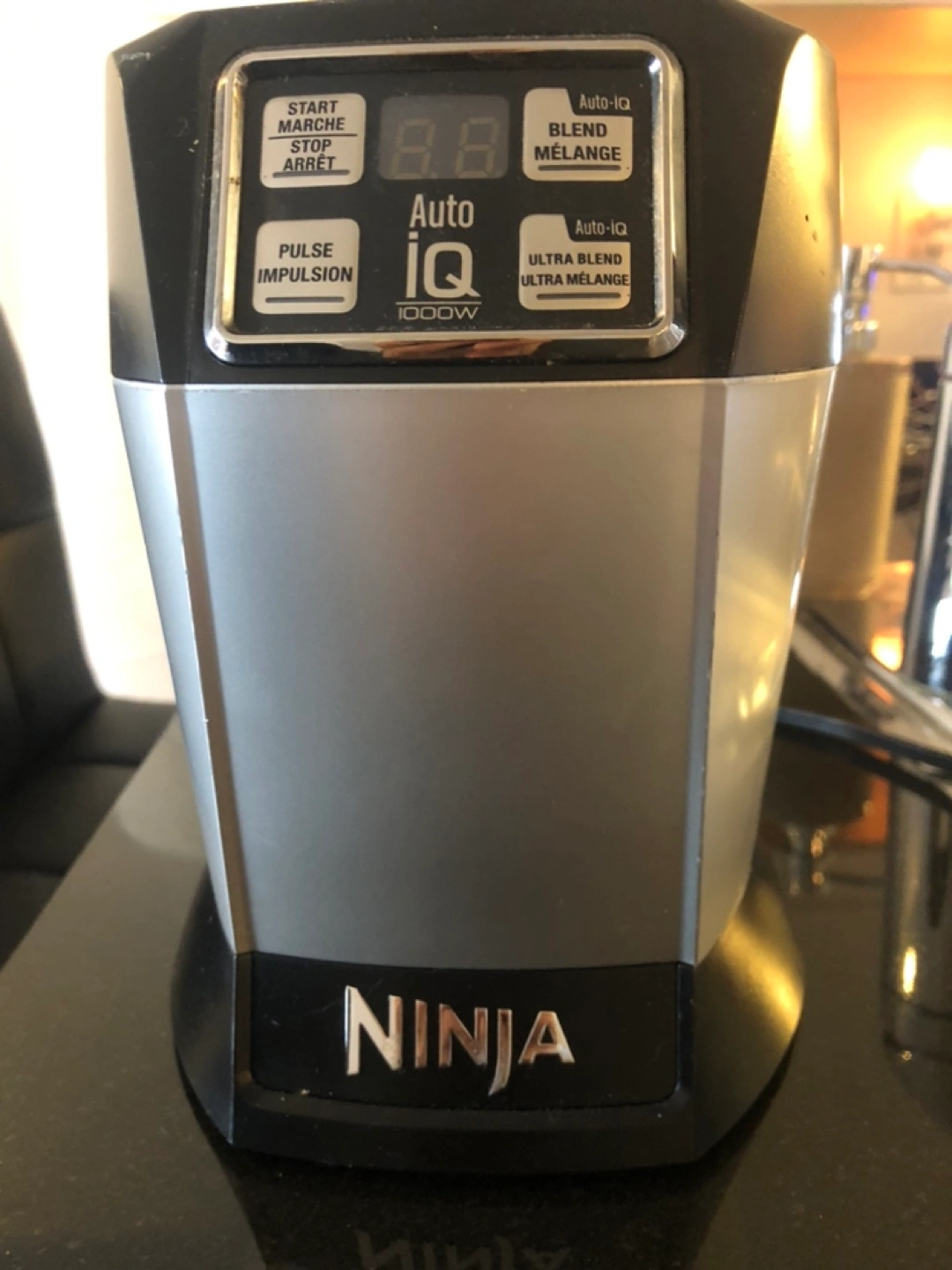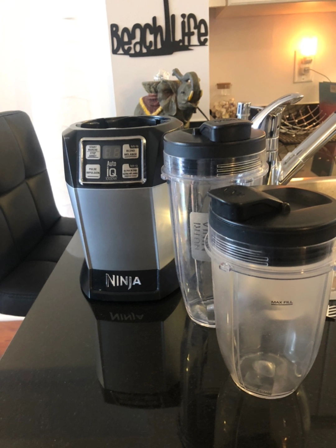 Ninja blender, Auto IQ technology. 1000W motor. Includes two cups with lids. Great for smoothies and more.
