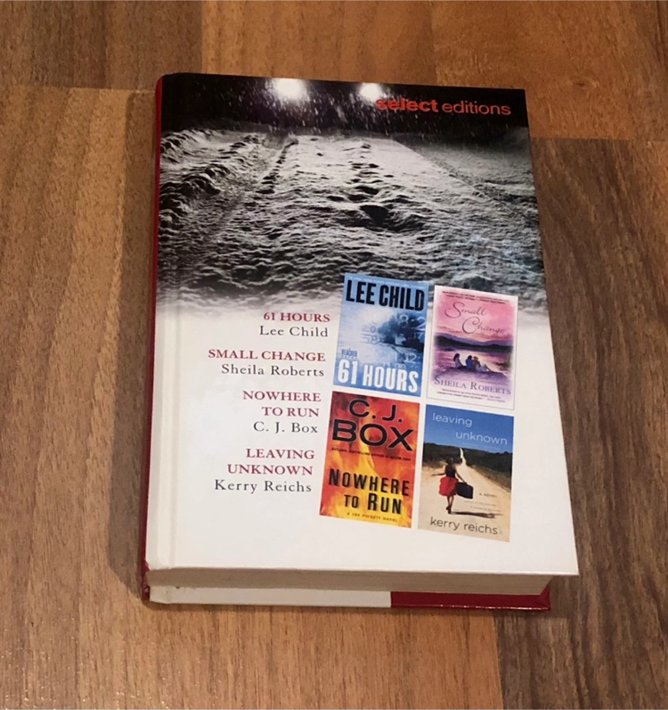 Collection of four novels, hardcover copy. Includes Lee Child's 61 Hours, Sheila Roberts' Small Change, C.J. Box's Nowhere to Run, and Kerry Reichs' Leaving Unknown. Select Editions publication. Also open to trades!