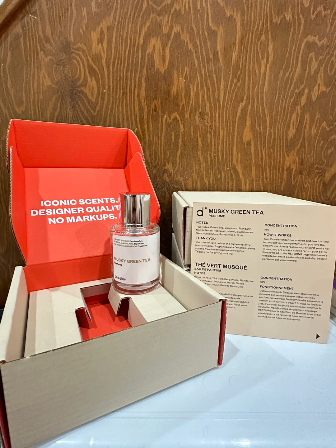 New Dossier Musky Green Tea perfume. Eau de parfum. 18% concentration. Includes box. Brand new Dossier Musky Green Tea Inspired by Creed's Silver Mountain Water Retail Price: $60+ tax ( Only asking $40) Gender: Unisex Vegan | Cruelty-free PETA Animal Test Free | Clean ingredients Musky Green Tea opens on a crisp and invigorating note, combined with an exhilarating splash of green tea, neroli, petitgrain, and black current. This burst of unexpected freshness creates a cooling effect that is incredibly long-lasting. Pair that with hints of clean muskiness and rough sandalwood, and this is a scent that has no problem standing all on its own. Pure and bright, Musky Green Tea evokes the crispness of an invigorating breeze of fresh mountainous air, and the coolness of sparkling streams in the Swiss Alps.