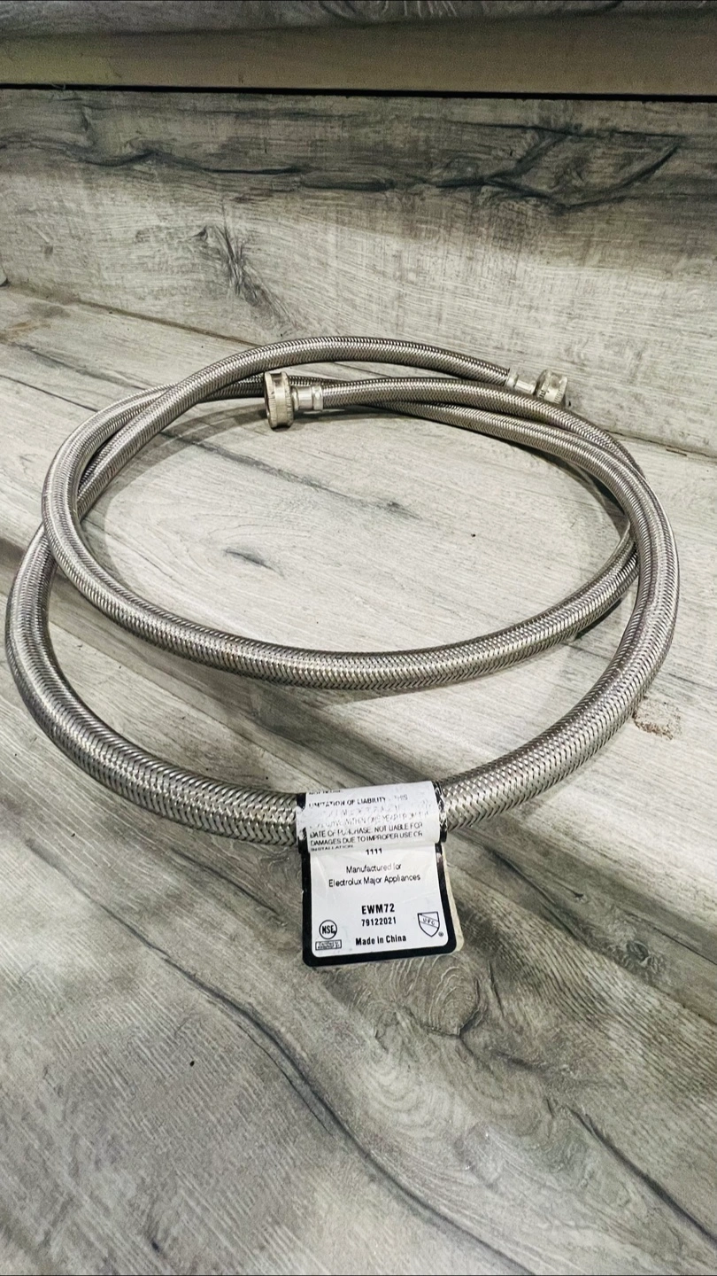 Little used almost like new stainless steel braided water supply lines. Measures approximately 48 inches long. Includes two connectors. Ideal for washing machine hookup.