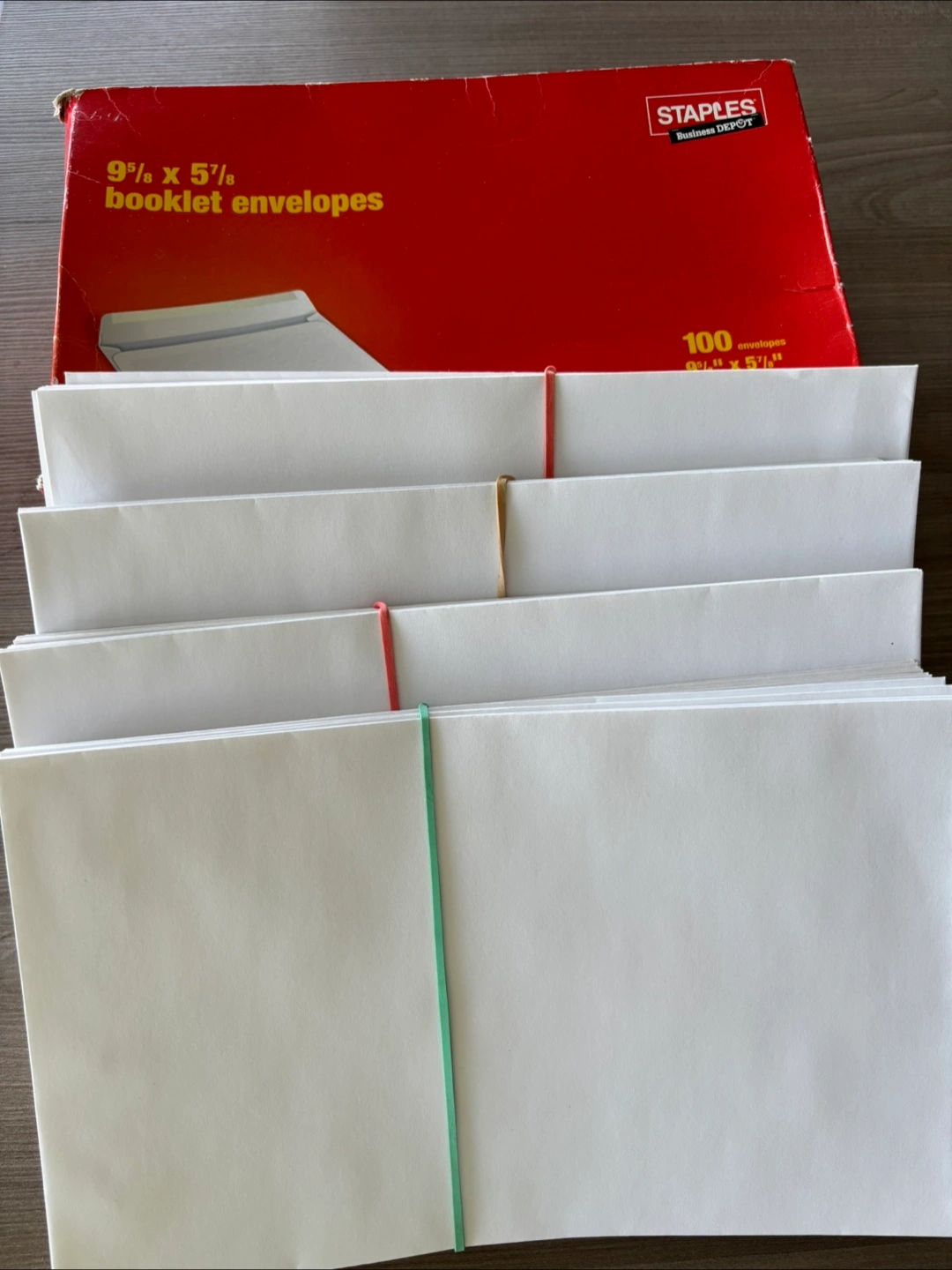 Staples brand white envelopes. Perfect for mailing documents, cards or other items. We’ve had them for years but they are still good and usable (I checked each one). $2 for 30 count. Or $10 for 160 count. Similar envelopes at Staples: https://www.staples.ca/products/438916-en-staples-gummed-white-booklet-envelopes-5-78-x-9-58-100-pack Click on my name and scroll down to see my other listings and pickup locations.