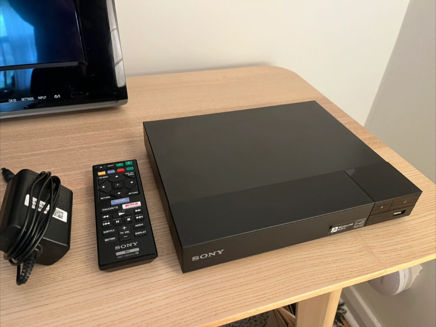 Midtown located. Delivery possibility. Slim profile Blu-ray player. Includes remote control and power adapter. Plays Blu-ray discs and CDs. Features HDMI and other outputs. Compact design. Pickup close to Davisville subway station, 6min walk. Plays PS3 games when connected online. Also a streaming options.