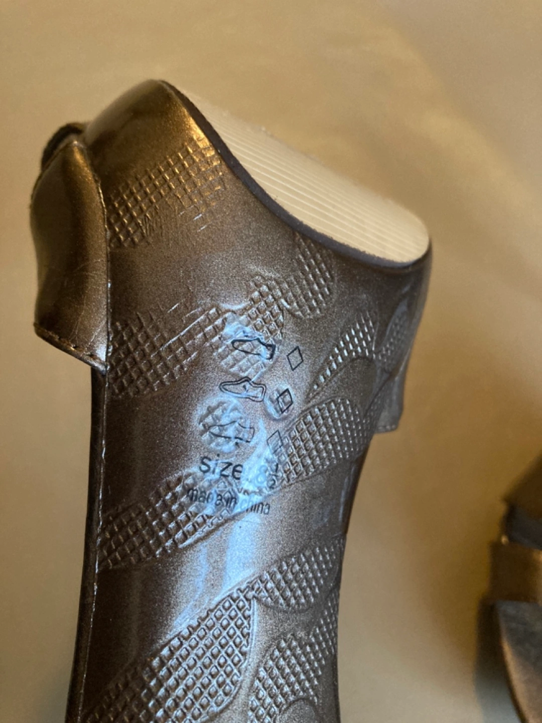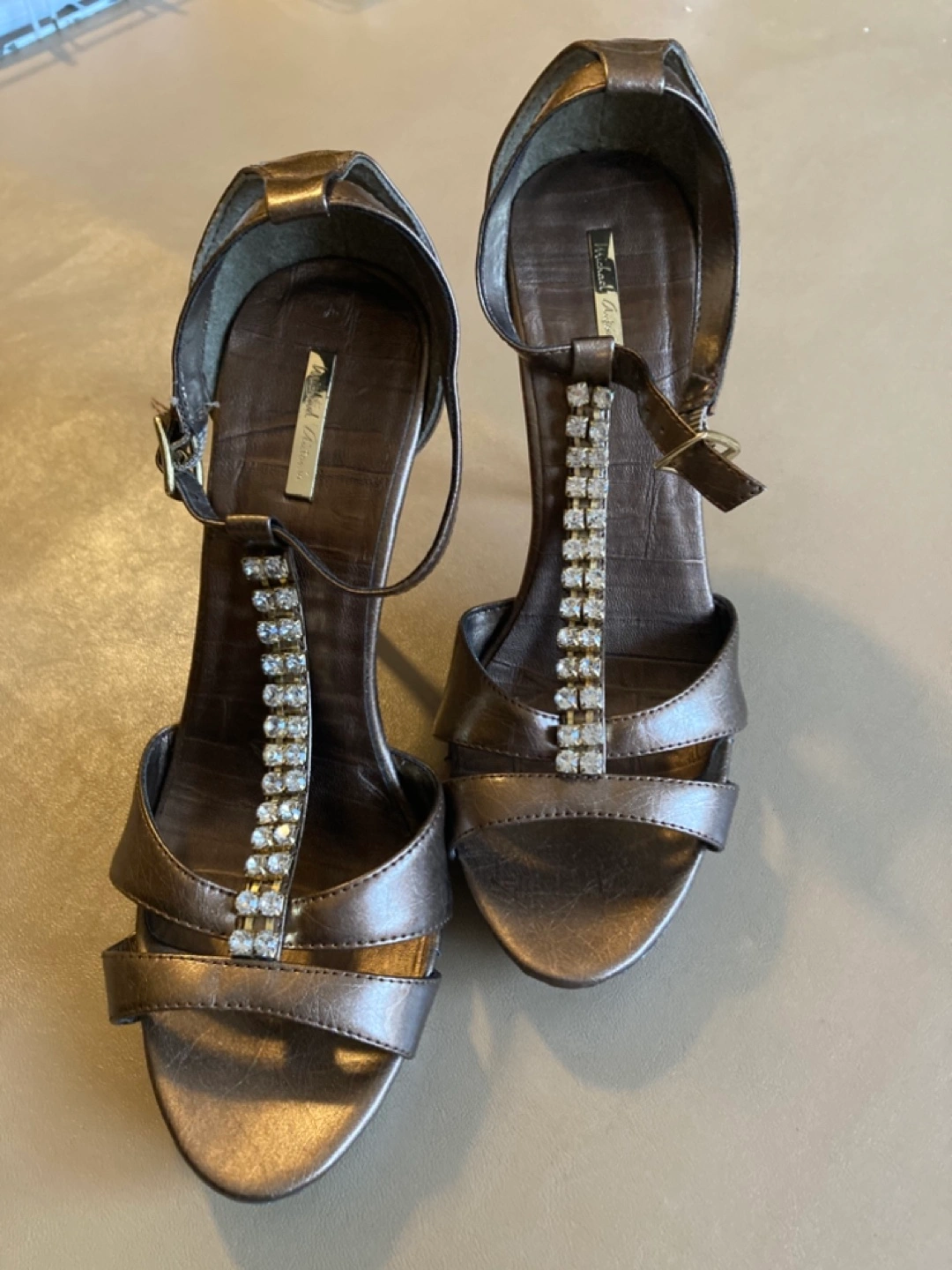 Bronze leather sandals. Rhinestone detail. High heels. Ankle strap. Price is negotiable