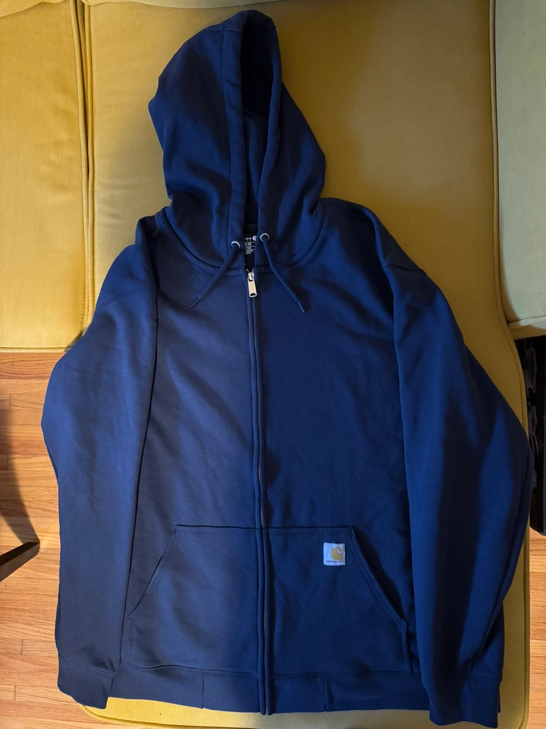 Check out this navy blue Carhartt full zip hoodie in XL! It's in good condition and ready to keep you warm. Perfect for layering or just chilling out, this hoodie has a classic look with a super durable build. Here are some details: * Brand: Carhartt * Size: XL * Colour: Navy Blue * Fit: Loose Fit Looking at similar listings on Kijiji, the price range for similar Carhartt hoodies is $50-$80. I've priced mine at a great value, reflecting its condition and quality. Don't miss out on this comfy classic! And hey, if you're seeing this ad, it means this awesome hoodie is still up for grabs! Pick up in Downtown. Please check out more of my items and get a good deal.