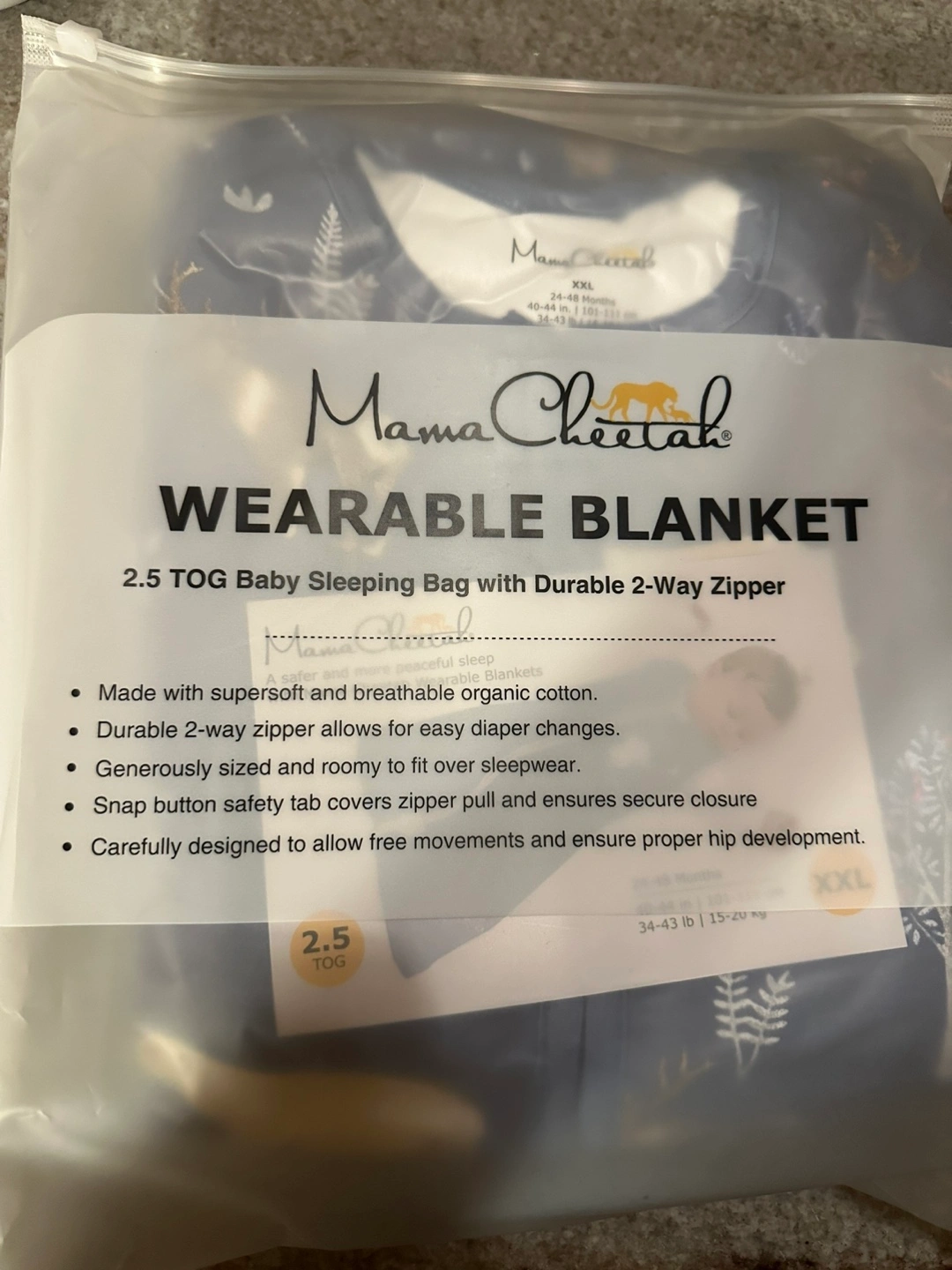 Baby sleeping bag. Supersoft and breathable organic cotton. Durable two-way zipper. Generously sized. Snap button safety tab. Designed for free movement and hip development.