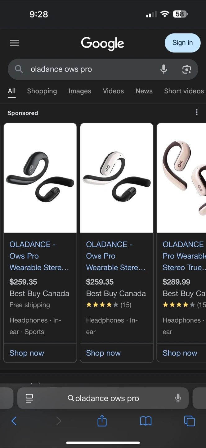 New Oladance OWS Pro wireless earbuds. Includes charging case. Great sound quality. Half price. Brand new never opened. Great for sports or people having trouble to use in ear plugs