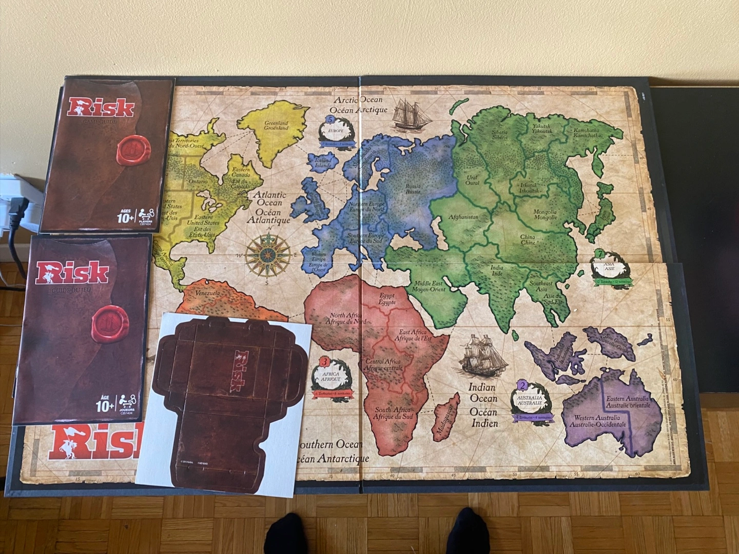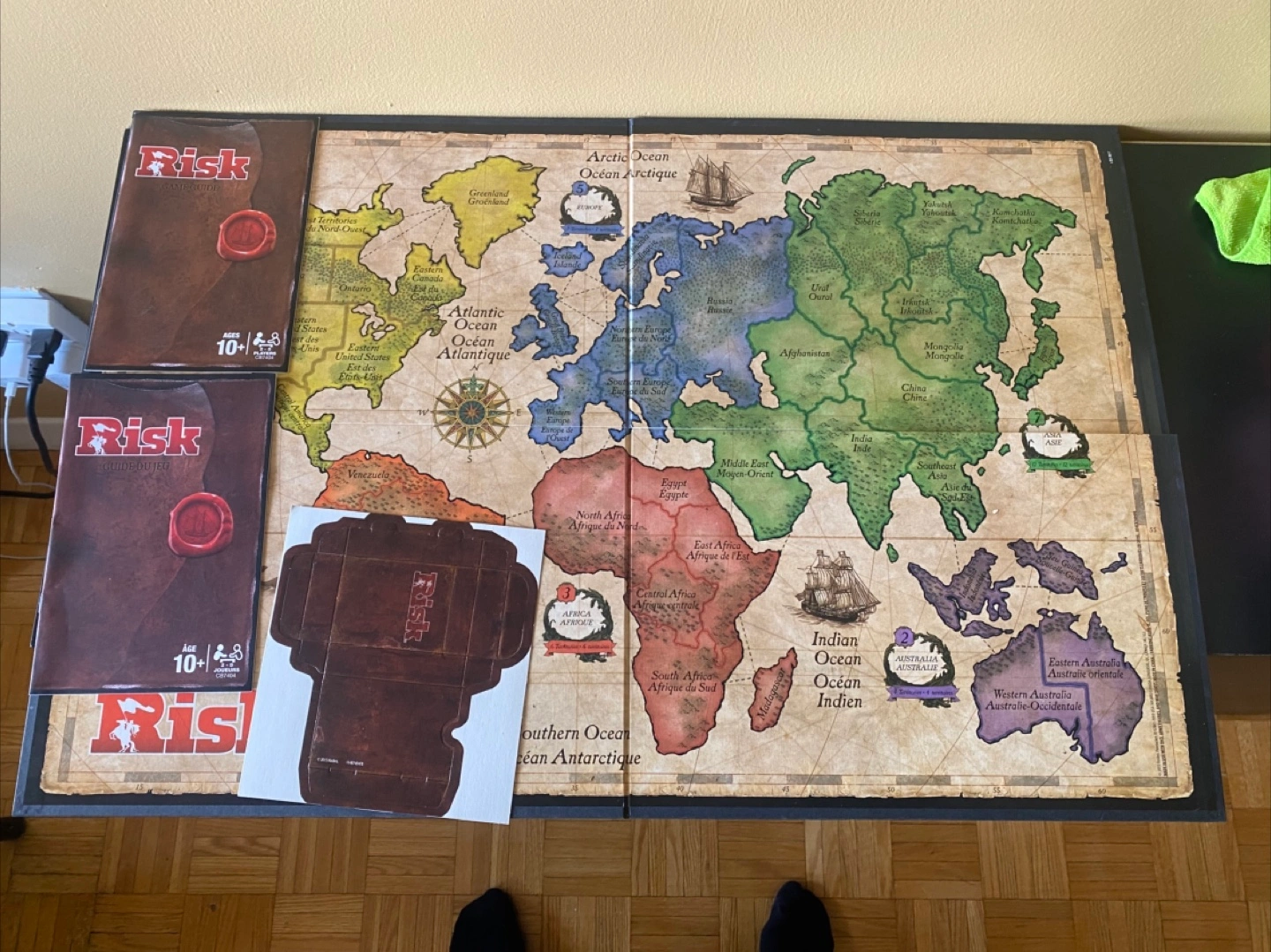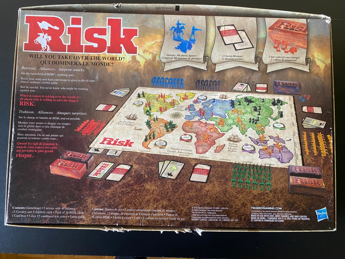 Take over the world with Risk, the classic strategy board game of diplomacy, conquest, and global domination. Battle opponents, form alliances, and deploy your armies in this timeless favorite. Great for game night with family or friends. Complete set with all pieces and instructions.