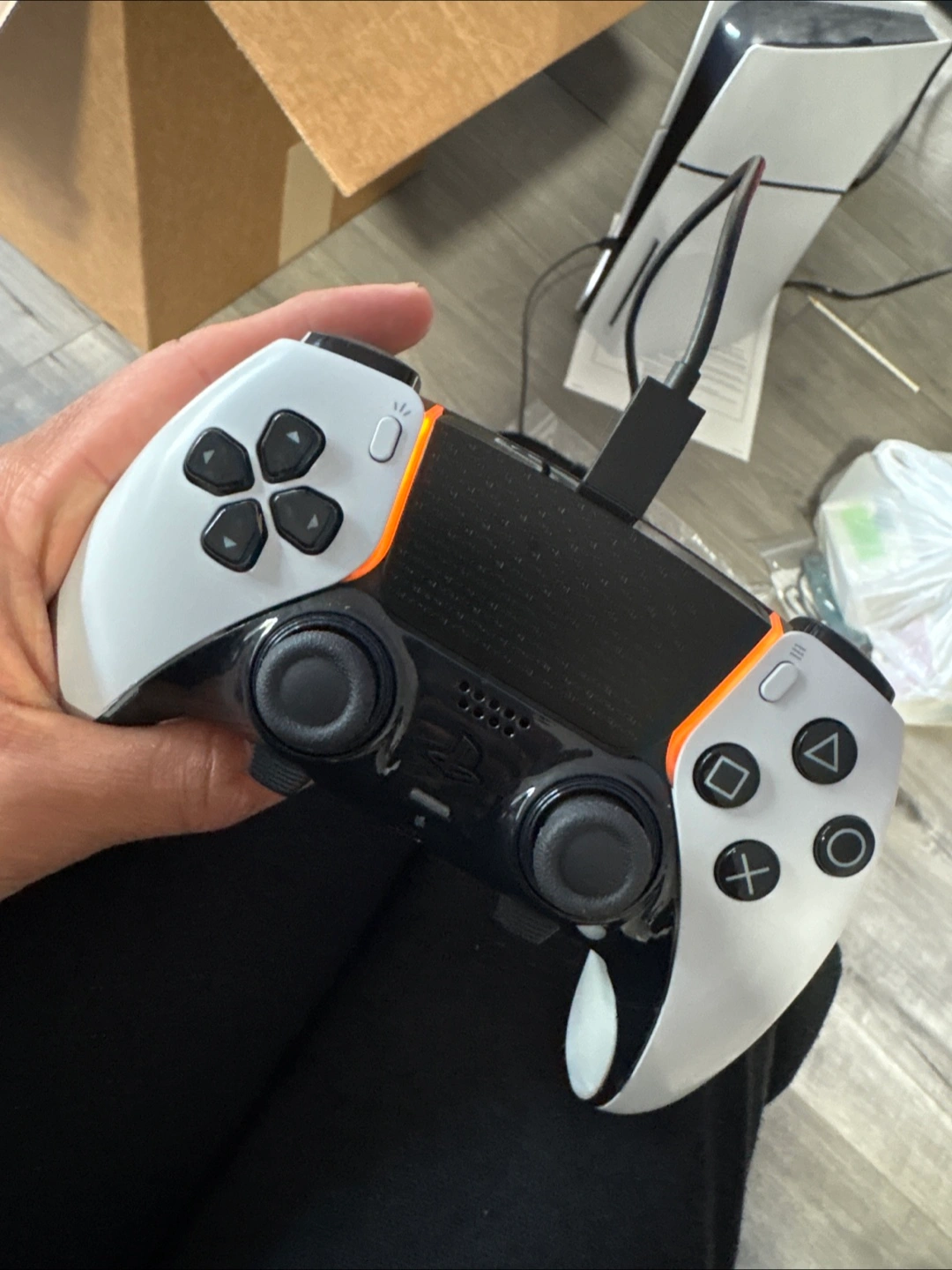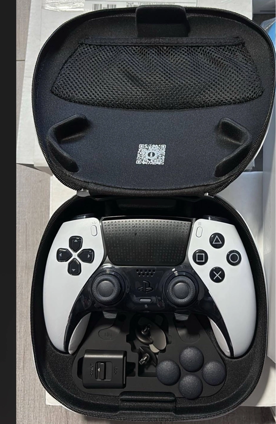 Wireless controller for PlayStation 5. Includes carrying case, extra thumbsticks, and back buttons. Priced according to condition.