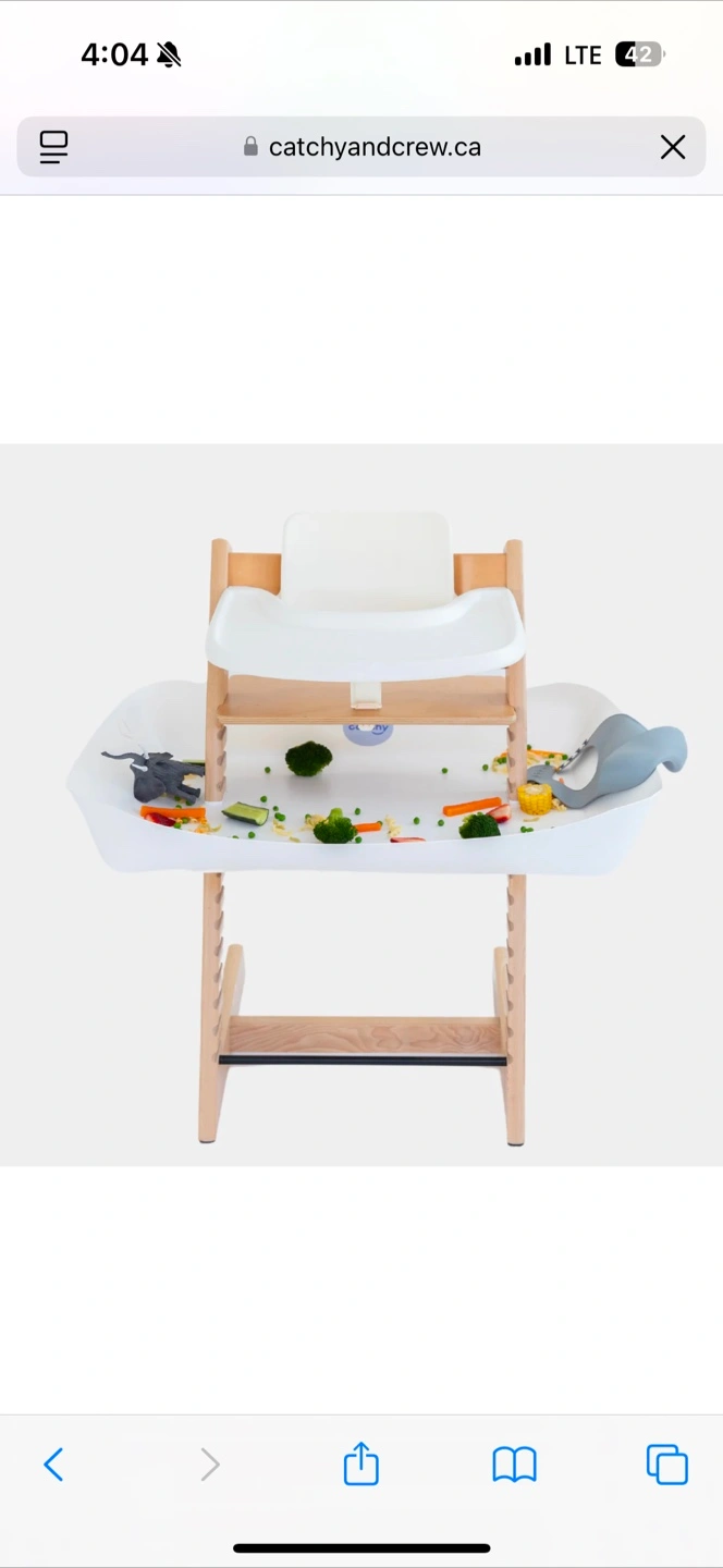 Catchy food catcher for Tripp Trapp high chair. Brand new still in delivery bag. Amazing for catching ANYTHING your child puts over their highchair and not on the floor. Very convenient and EASY to clean.