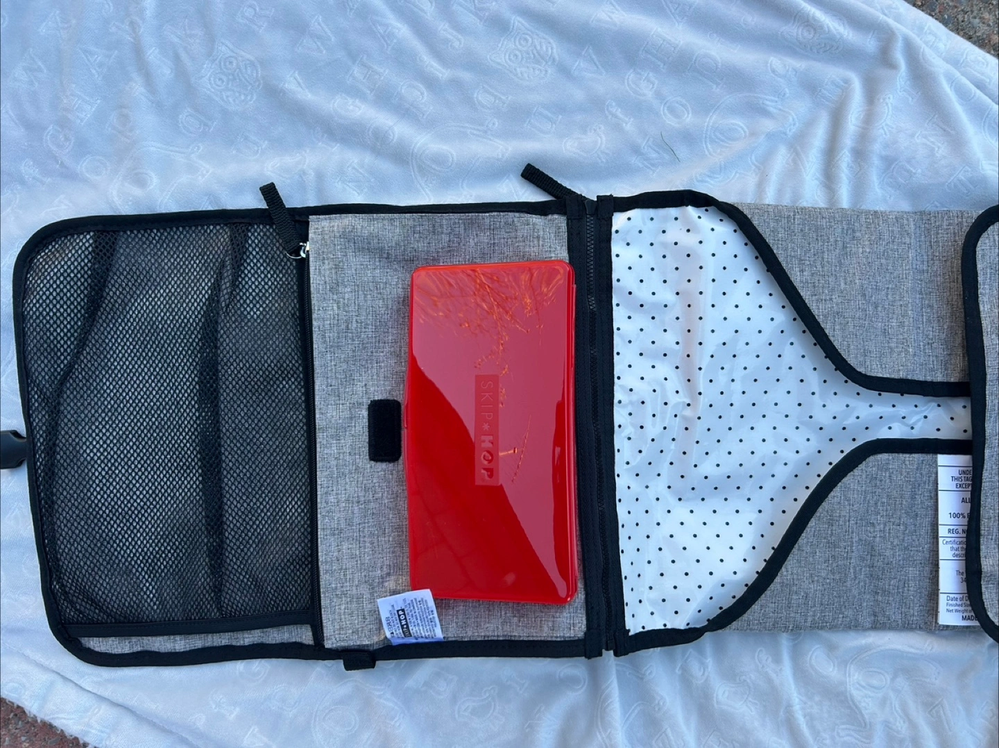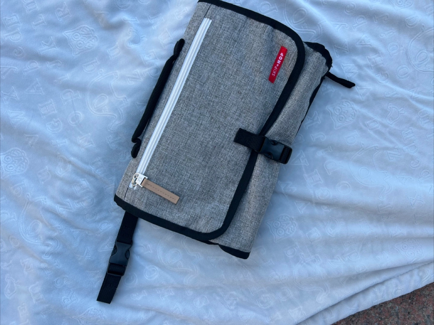 Skip Hop change mat. Grey. Comes with wipes container. Never used. Very handy for on the go diaper changes.