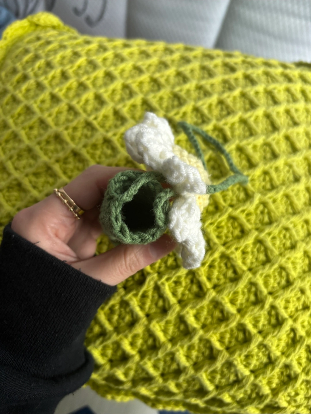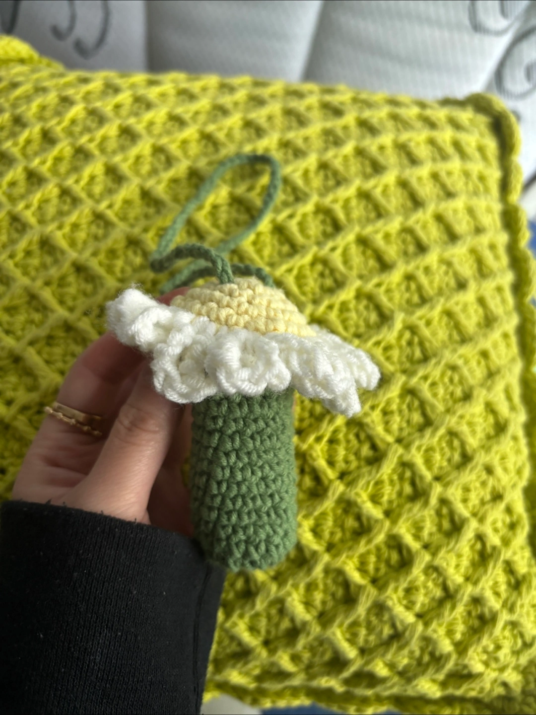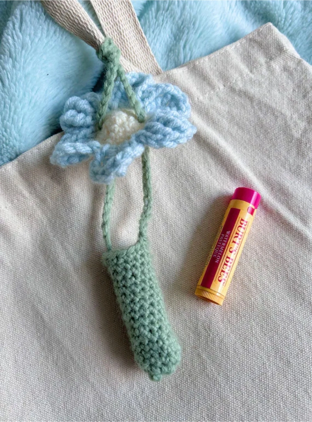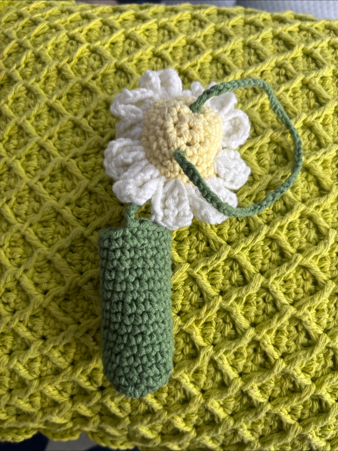 crocheted daisy flower lip balm holder