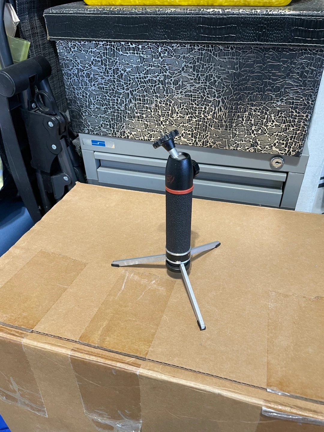 Portable mini tripod and extendable handle. Lightweight and compact. Ideal for travel or small devices. Great for stabilizing cameras or phones.