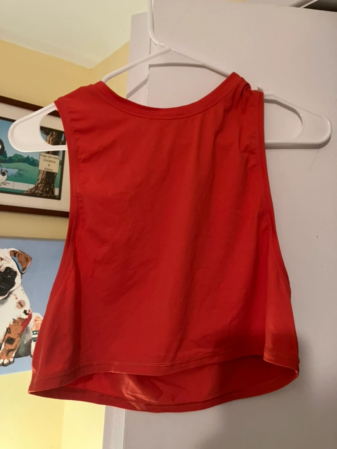 Women's cropped tank top. Sleeveless. Solid orange colour. Relaxed fit. Great for workouts or casual wear.