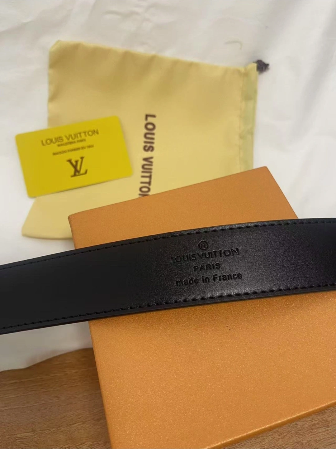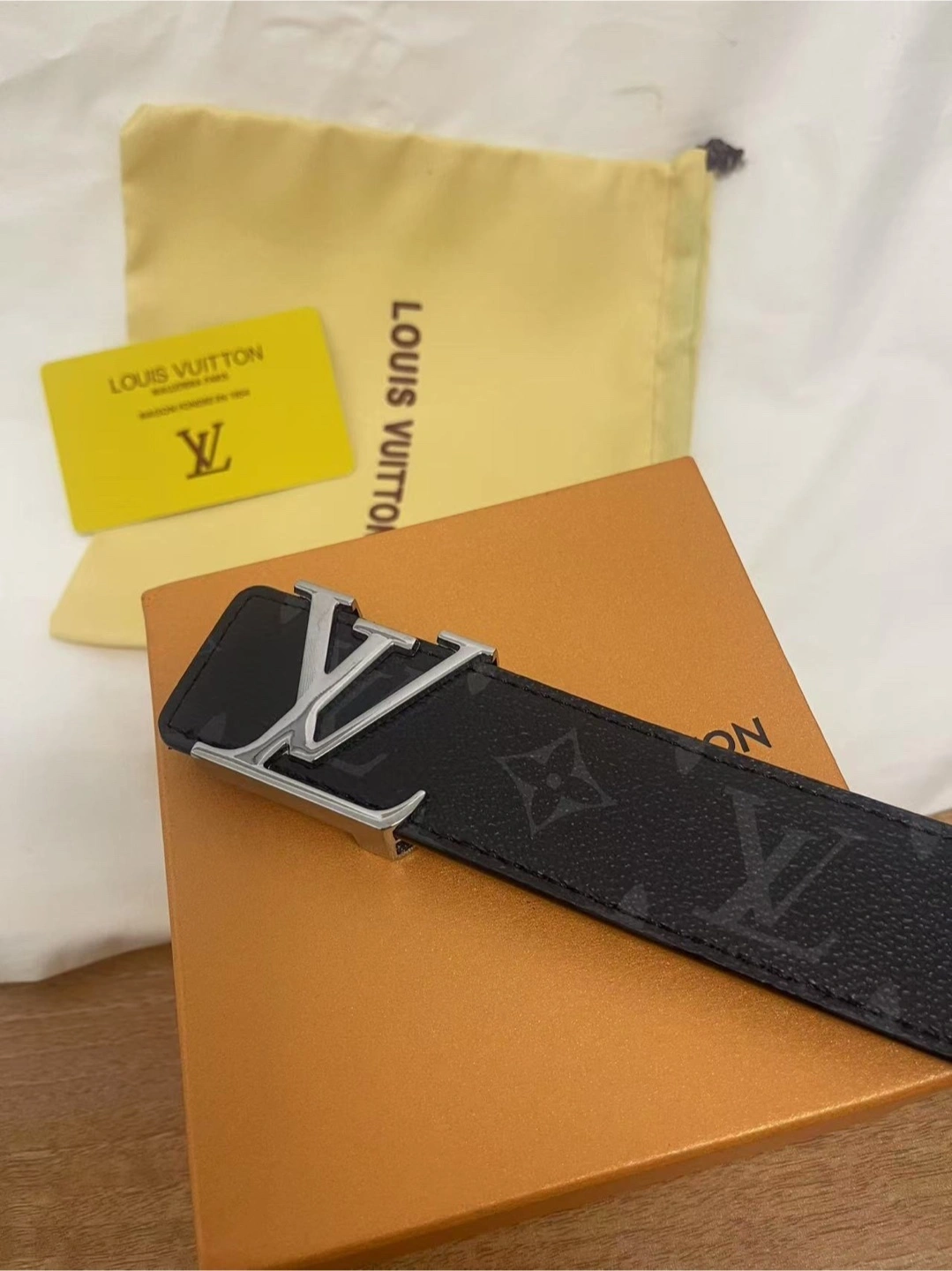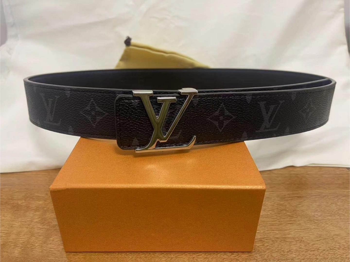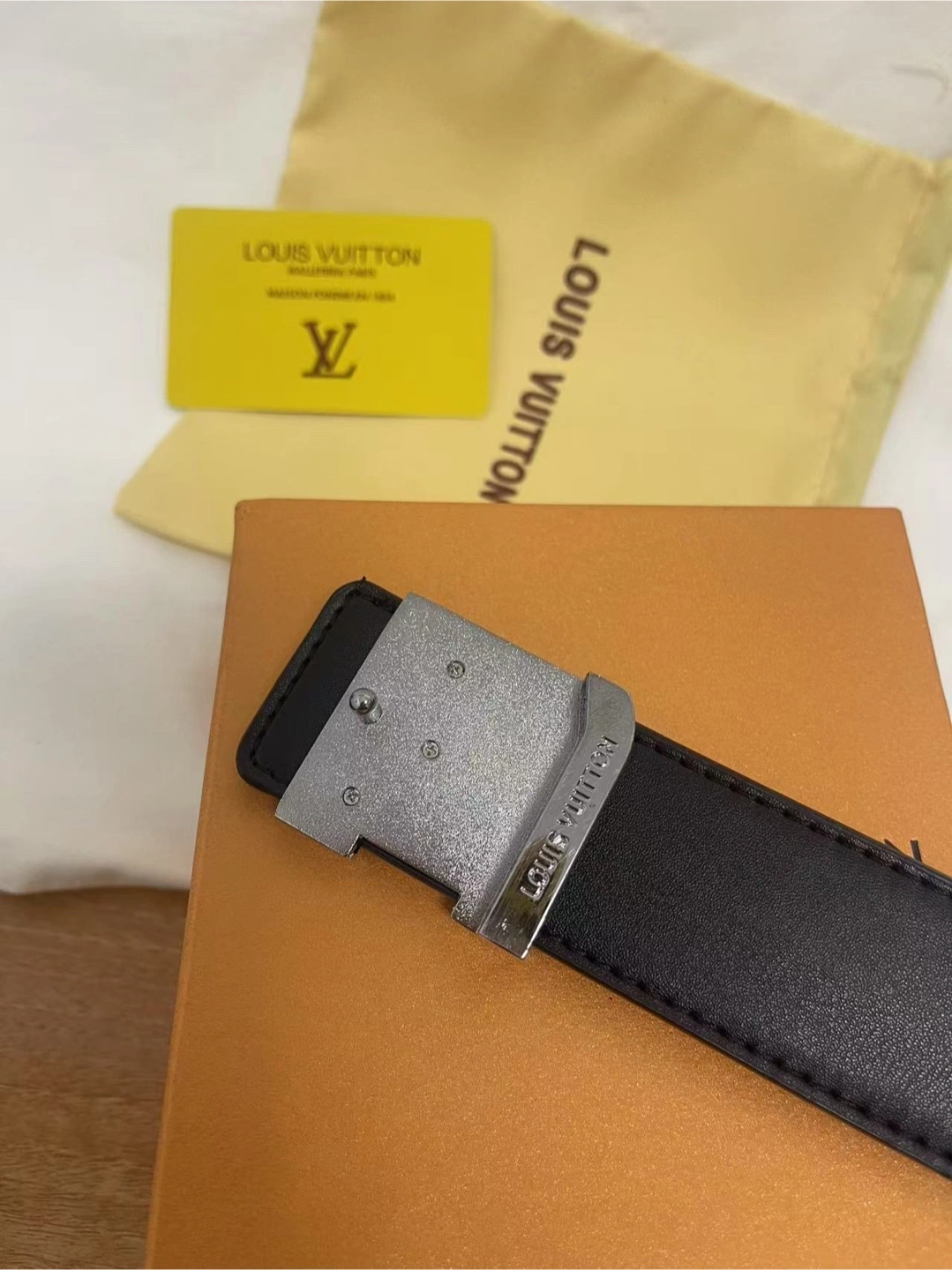 Men's reversible belt. Black leather with silver LV buckle. Comes with box and dust bag. Made in France.