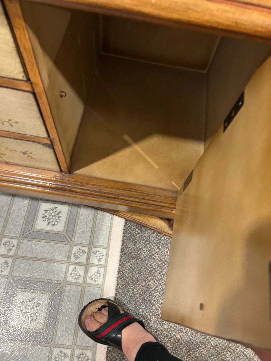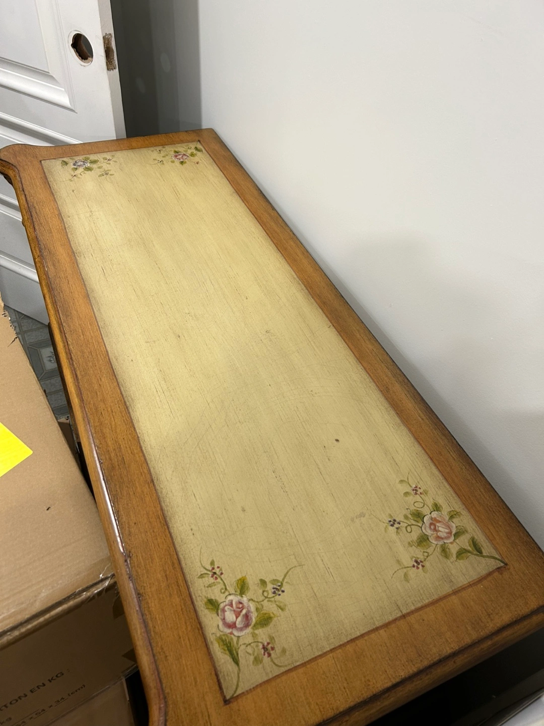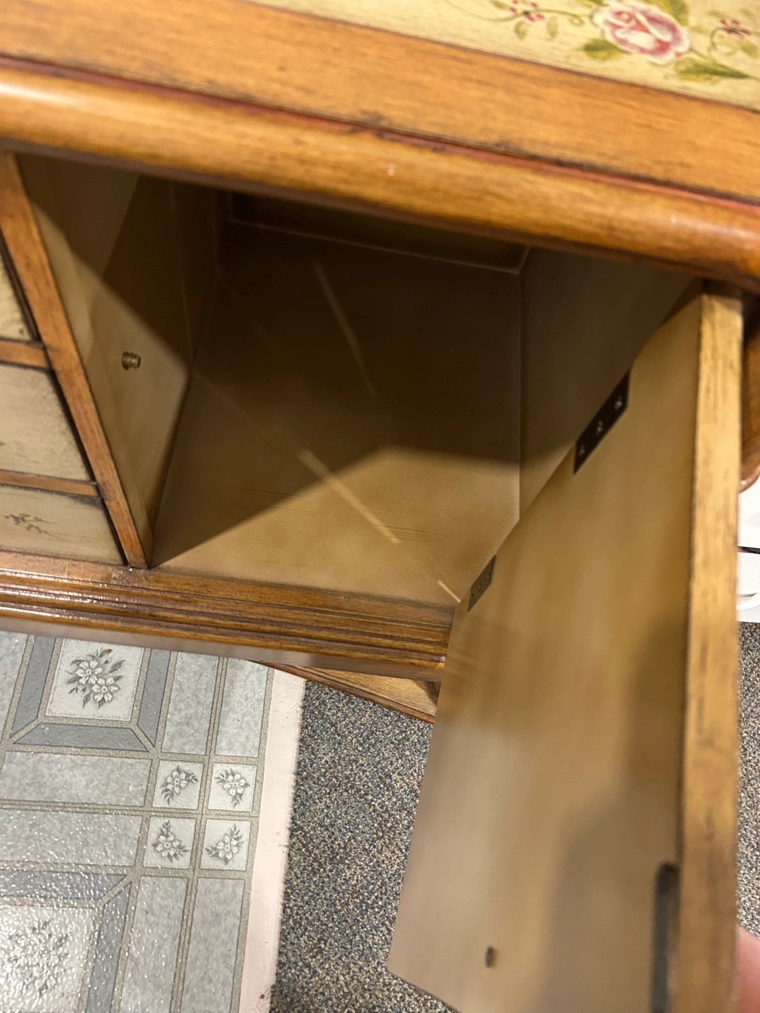 Beautiful hand-painted server. Three drawers, two doors. Floral design. Solid wood construction. Excellent condition.