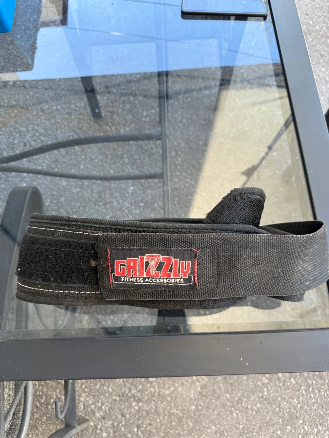 Black weightlifting belt. Durable material. Great for supporting your back during heavy lifts. Pre-owned, good condition.