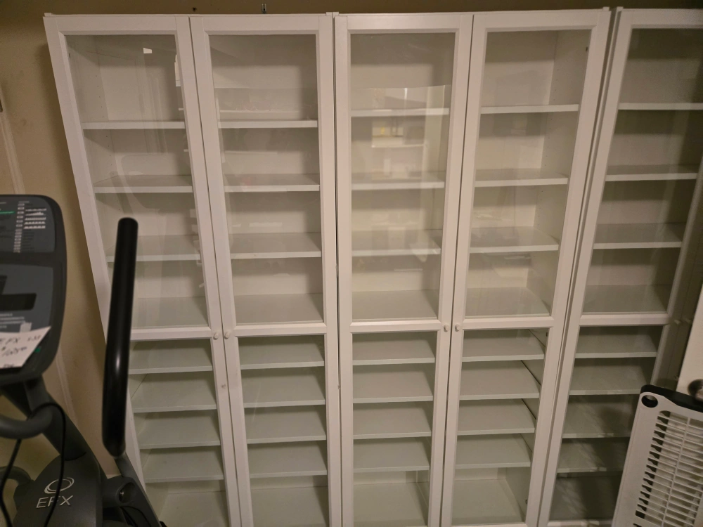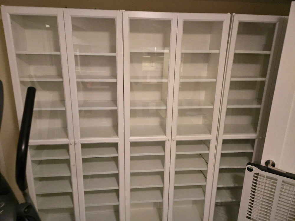 200 each !! Ask about delivery !! Check out website We deliver ship anywhere any country Weselleverything.ca Follow like Instagram :@weselleverythingnow Follow like Facebook page: weselleverything.ca Set of four tall white bookcases. Glass doors. Multiple shelves. Excellent for storage or display. Assembled.