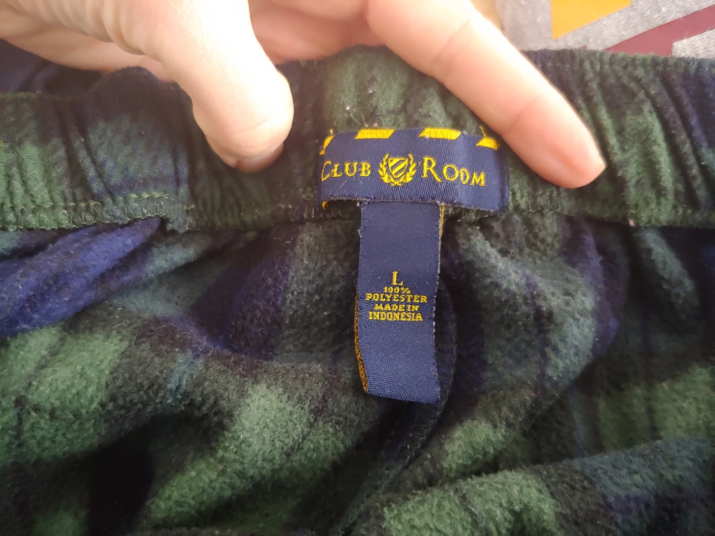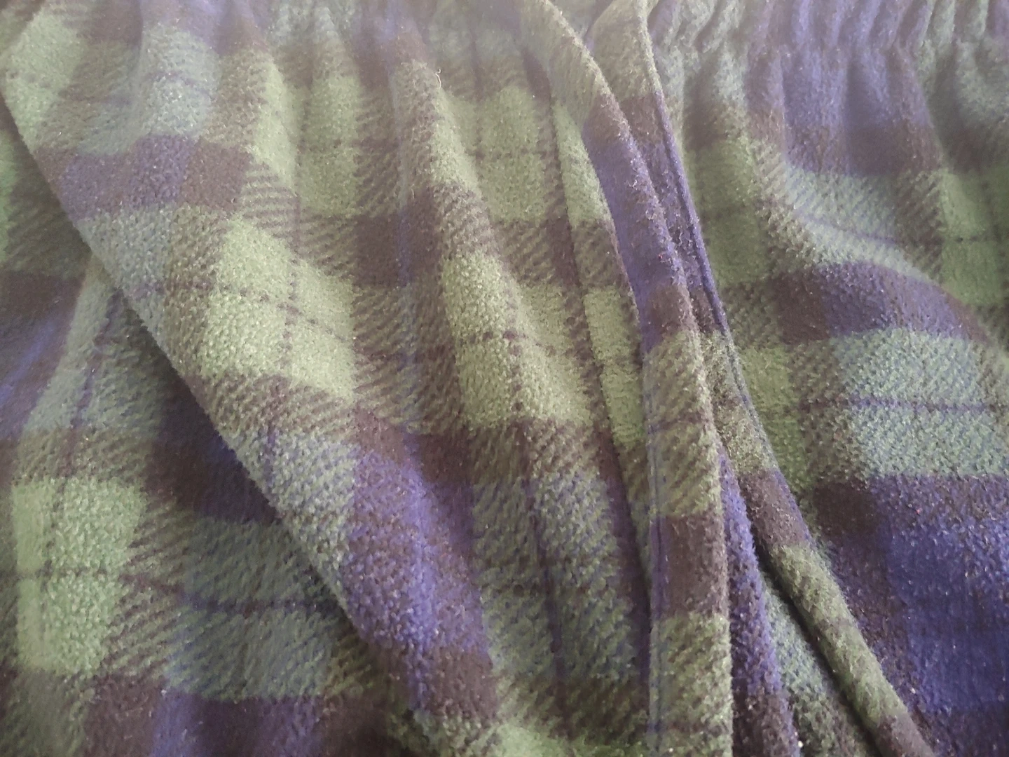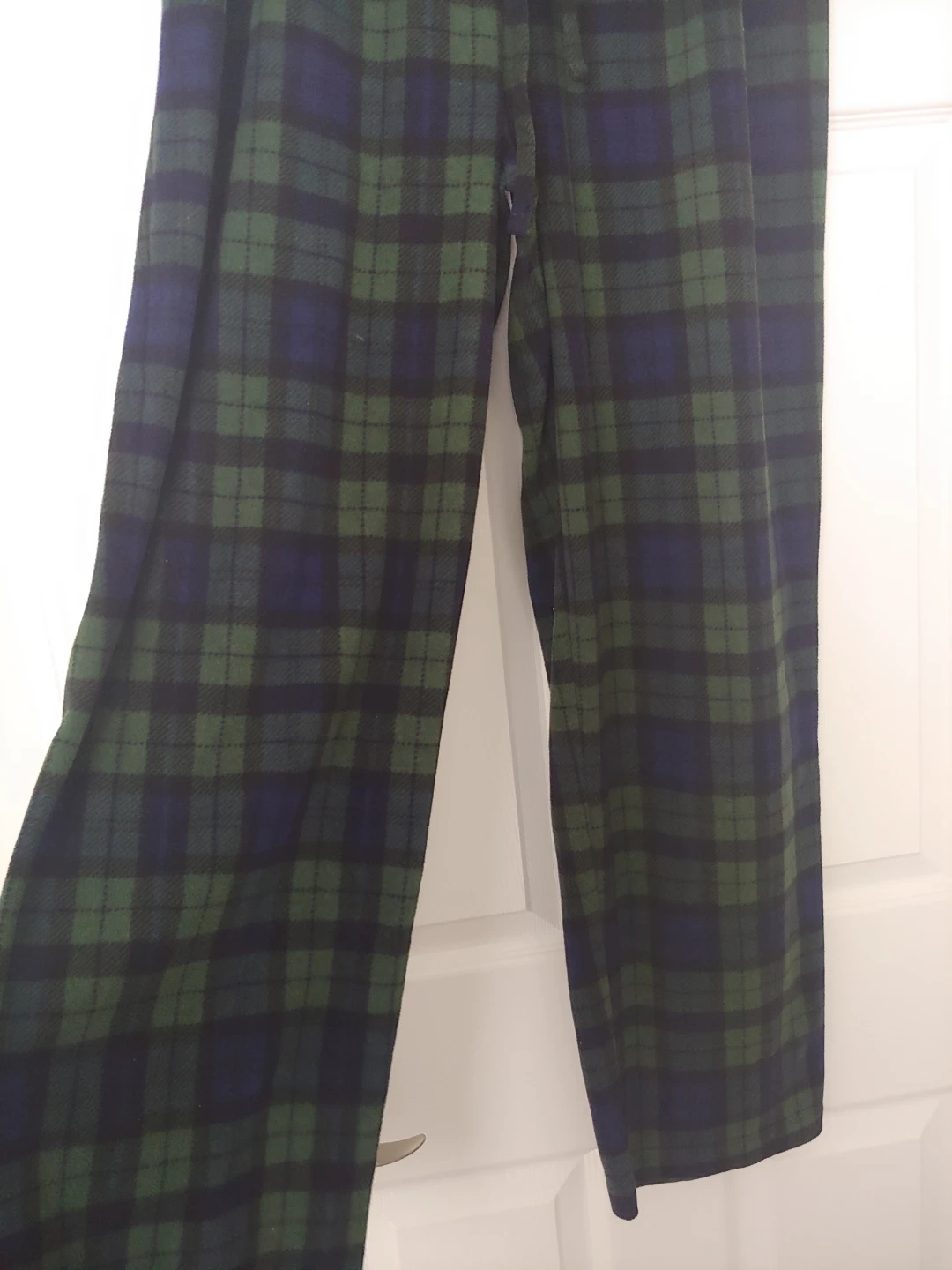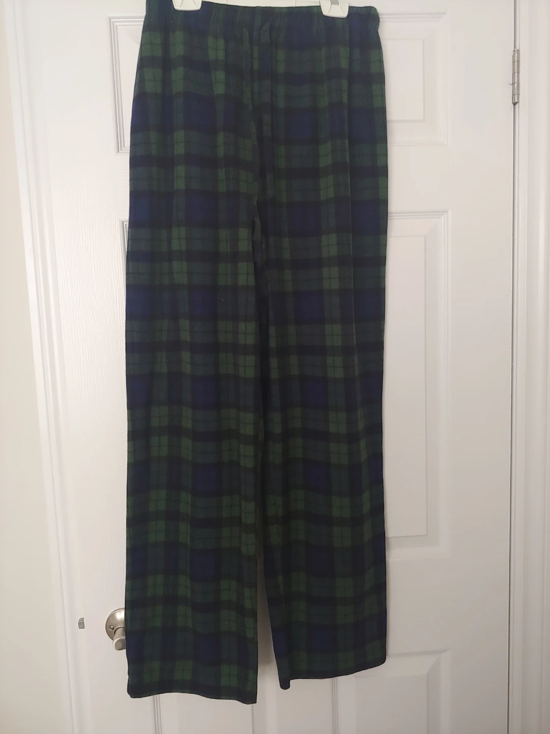Men's large lounge/pajama bottoms. Green and blue plaid fleece. Elastic waistband with drawstring. Worn once and washed. Like new condition.