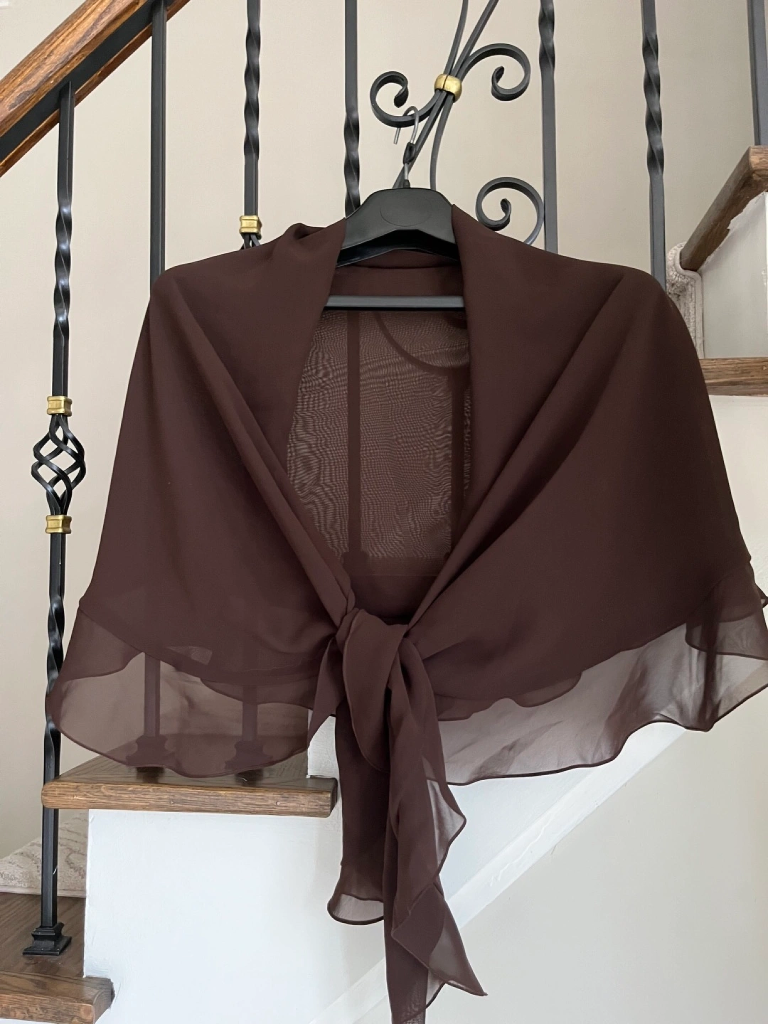 Chocolate brown chiffon wrap. Features a sheer overlay and ties at the front. Perfect for layering. Cash only Bathurst And Steeles Pick up