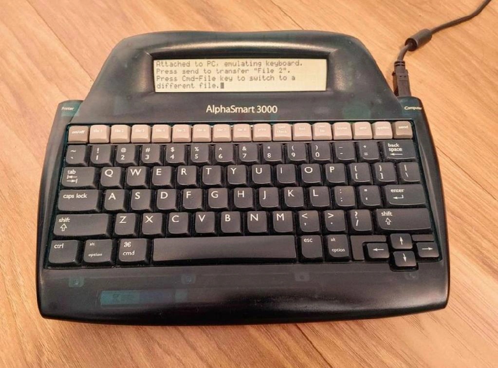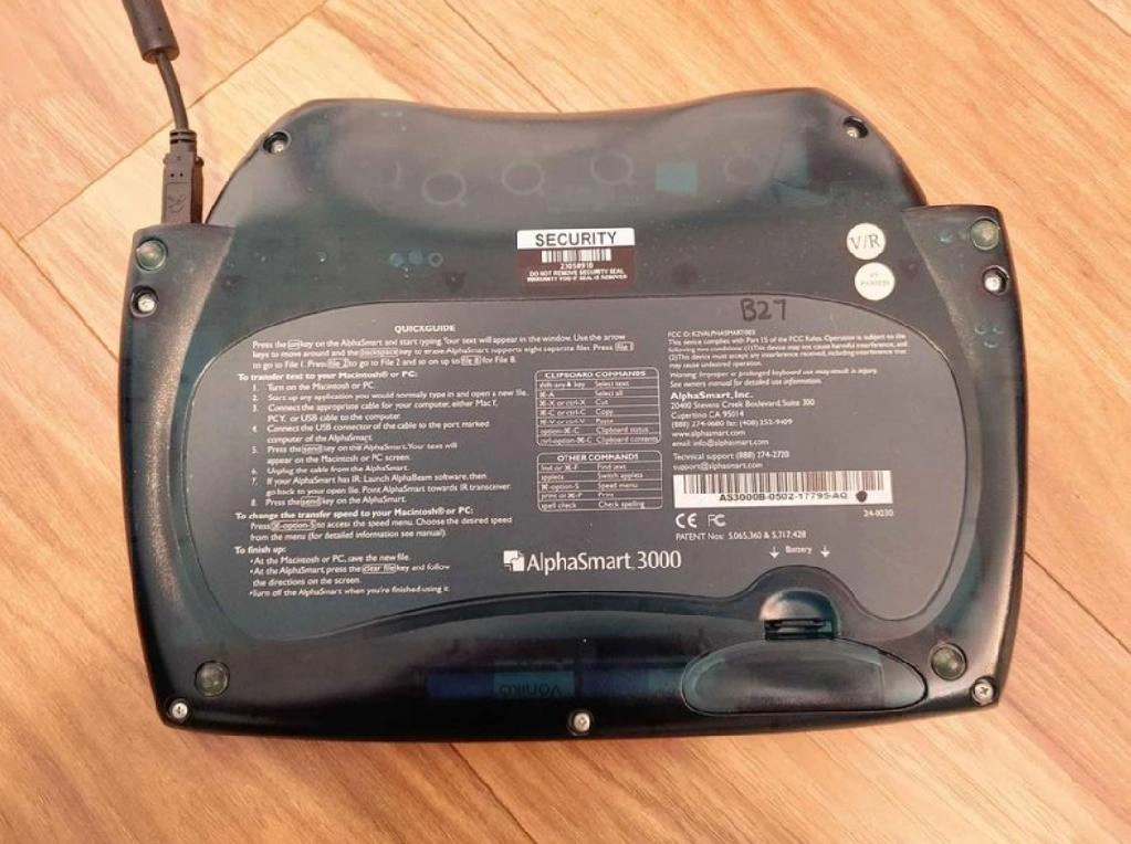 Go back to the year: 2003 with the AlphaSmart, allowing you to take your work on the go. Has 8 storage files, connects to both printer and PC, with the (Print Button) for fast printing and (Send Button) to quickly transfer what you type to any device (even your smartphone). Has rubber grip feet and can be powered by batteries or PC. (Serious Buyers Only Please!)