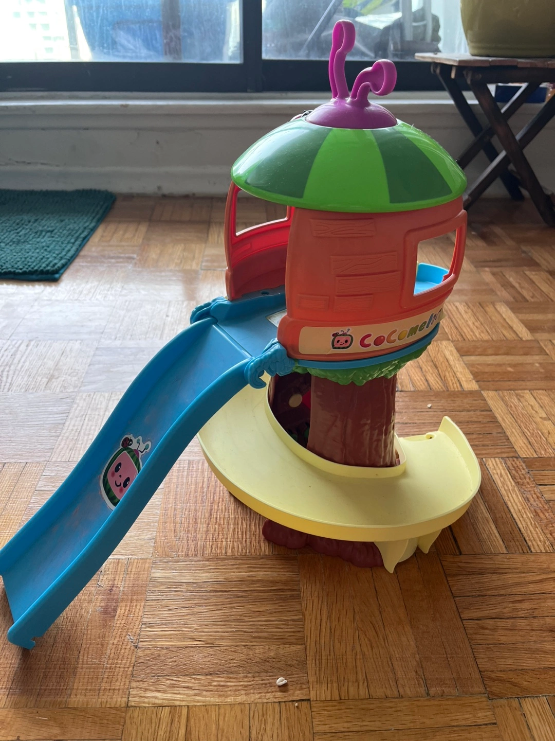 Adorable CocoMelon playset. Features a slide and curved ramp. Great for imaginative play.