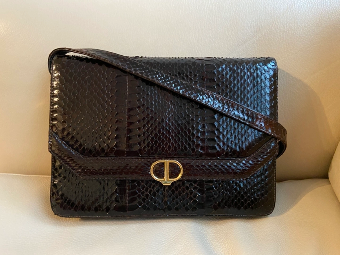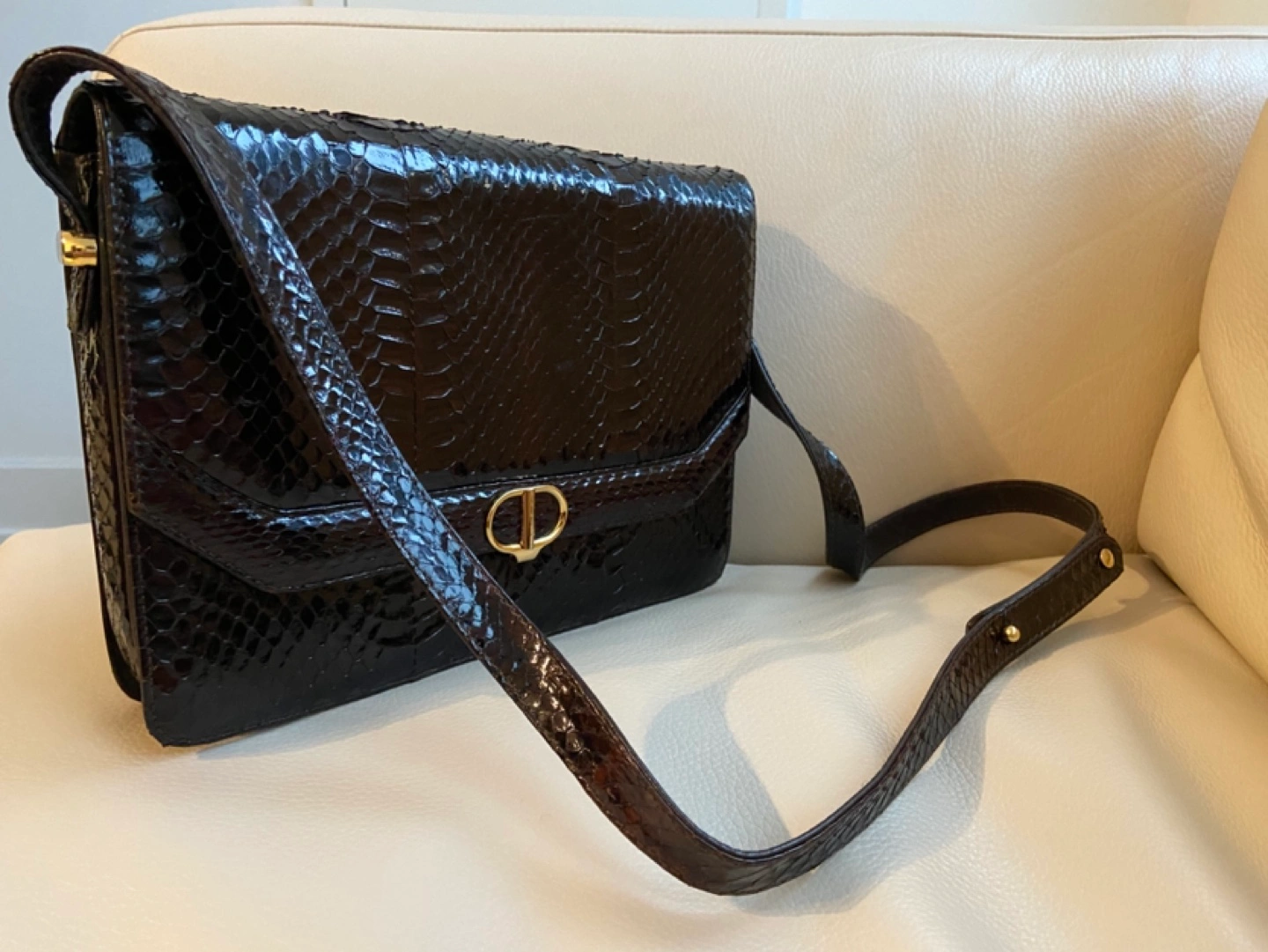 Sale🔥 Authentic Chanteclair Italy Purse Very Classy! ❤️Genuine Snake Skin! ❤️ In very good condition with minor signs of use ❤️ Can be worn as a shoulder bag and a crossbody bag ❤️perfect alternative for a Dior crossbody bag colour is not black it's like mahogany/deep maroonish-brown colour.