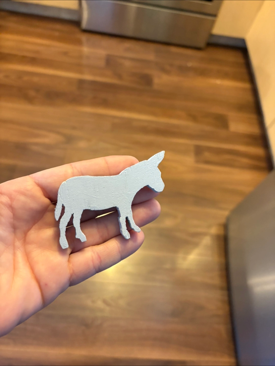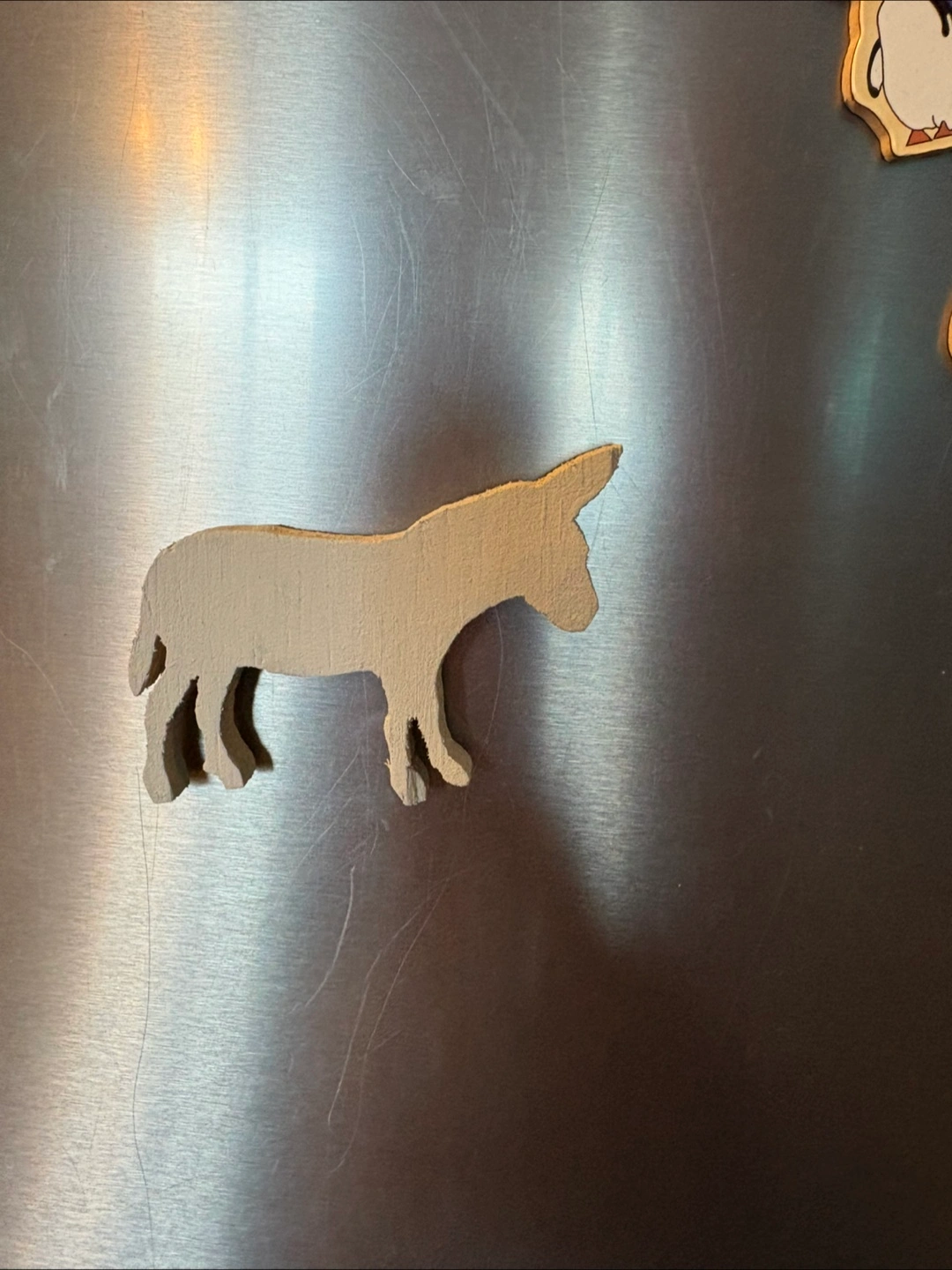 Adorable wooden donkey fridge magnet. Light grey colour. Great addition to any kitchen.