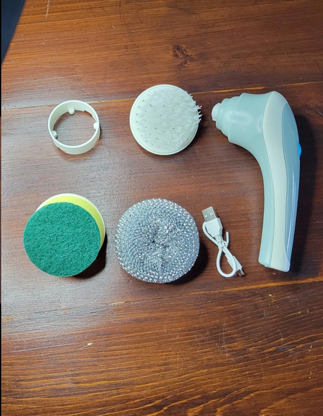 Handheld electric cleaning brush. Multiple attachments included: nylon brush, scouring pad, sponge. USB rechargeable. Great for cleaning dishes, pots, pans, and more. Sells for $15.99 +taxes and shipping on Amazon. Own it for a much lesser price! Check out my other listings and bundle to save. ๐๐ป๐ธ Cash and pickup only on Brimley and Eglinton Rd E. in Scarborough.