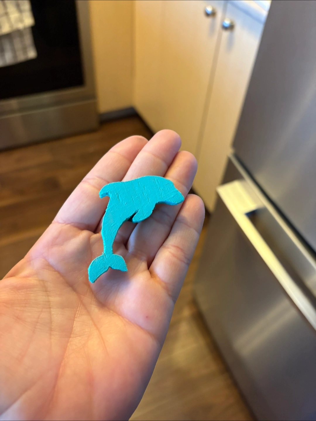adorable dolphin magnet. Great for decorations. light blue. Small size, perfect for adding a touch of whimsy.