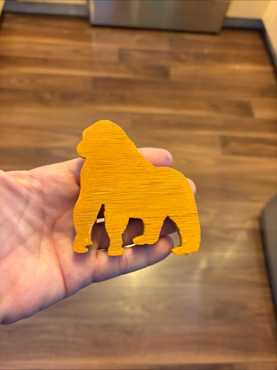 Cute little wooden gorilla magnet. Hand-painted orange. Perfect for a child's room or desk.
